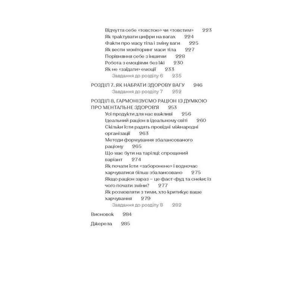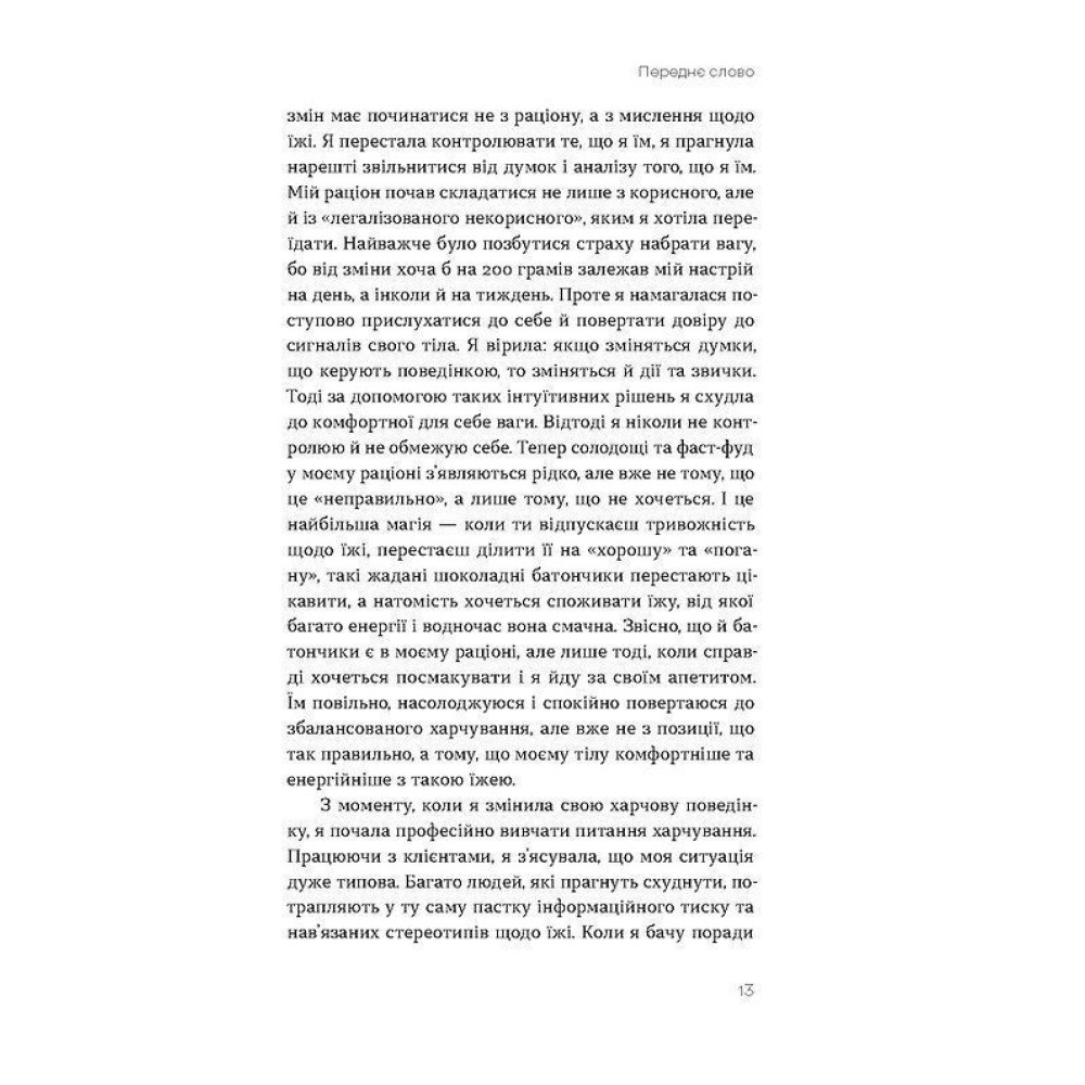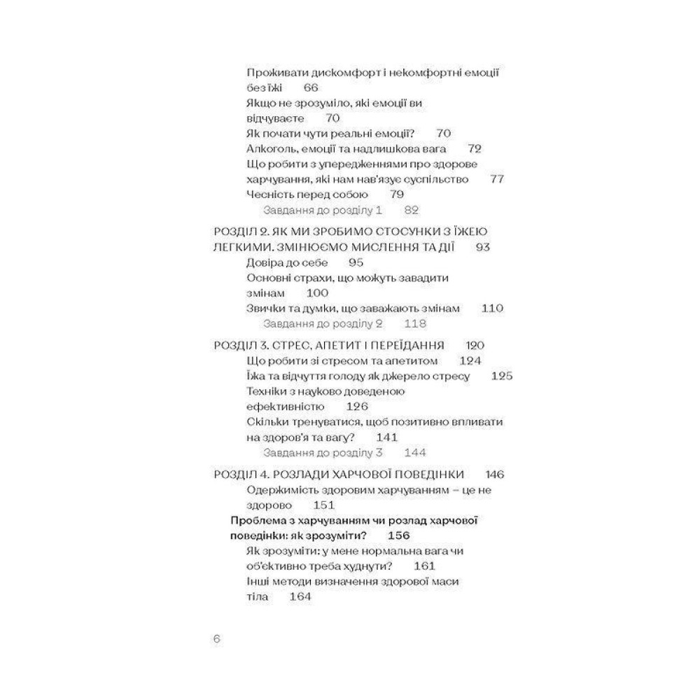 Мета її книжки — «Замість дієт. Як змінити харчову поведінку і ставлення до їжі» — змінити мислення щодо того, яким має бути харчування й, головне, ставлення до себе та до їжі. Ця книжка практична. У ній багато завдань, виконуючи які, ви зможете налагодити свої стосунки з їжею.