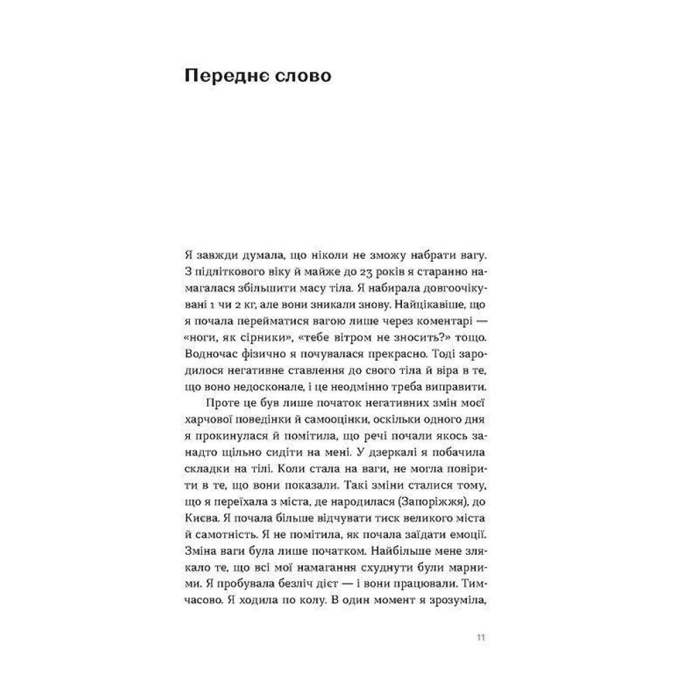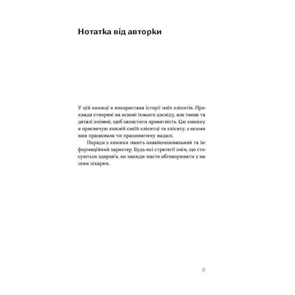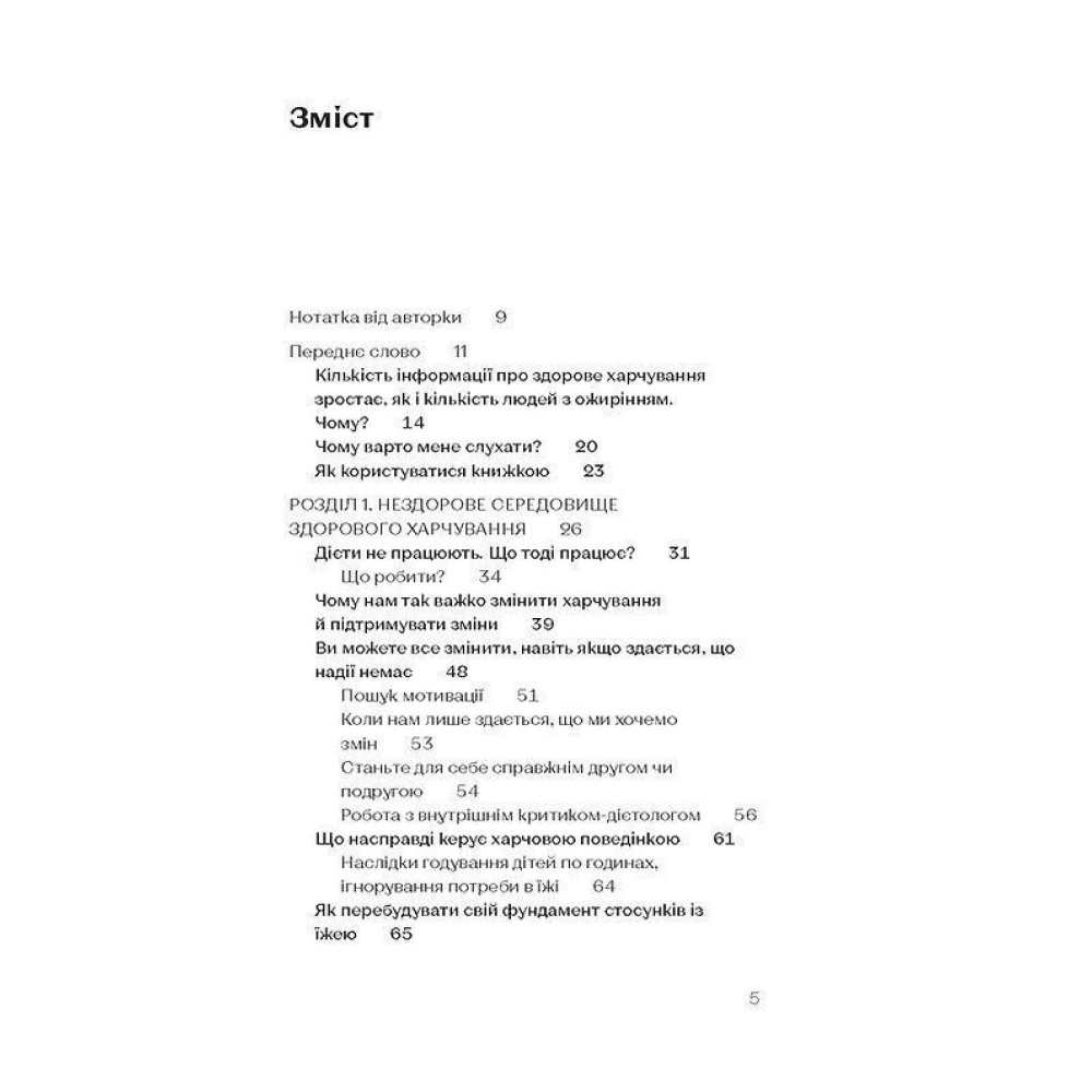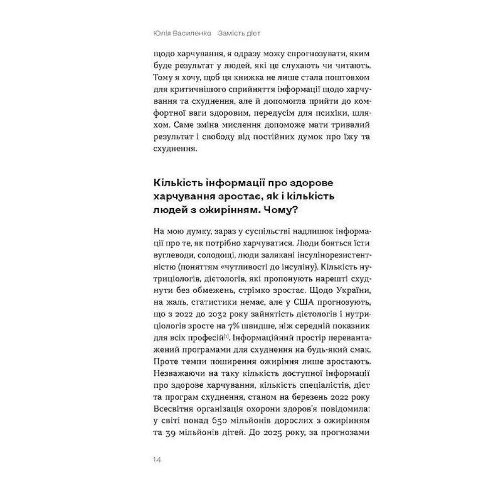 Мета її книжки — «Замість дієт. Як змінити харчову поведінку і ставлення до їжі» — змінити мислення щодо того, яким має бути харчування й, головне, ставлення до себе та до їжі. Ця книжка практична. У ній багато завдань, виконуючи які, ви зможете налагодити свої стосунки з їжею.