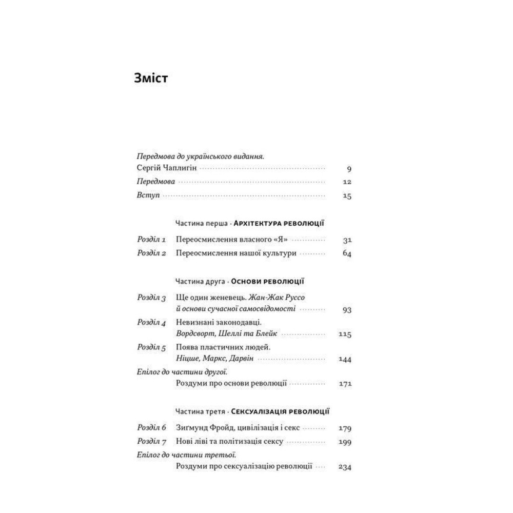 Трумен показує, що нинішнє суспільне сприйняття сексуальності, гендеру й самовираження — це не раптова зміна, а результат довготривалої еволюції філософських ідей. Він простежує шлях від Руссо, який переніс джерело істини всередину людини, через романтиків, які звели автентичність до емоційного вираження, і далі — до Ніцше, Маркса, Дарвіна та Фройда, котрі переосмислили природу людини, моралі та сексуальності.