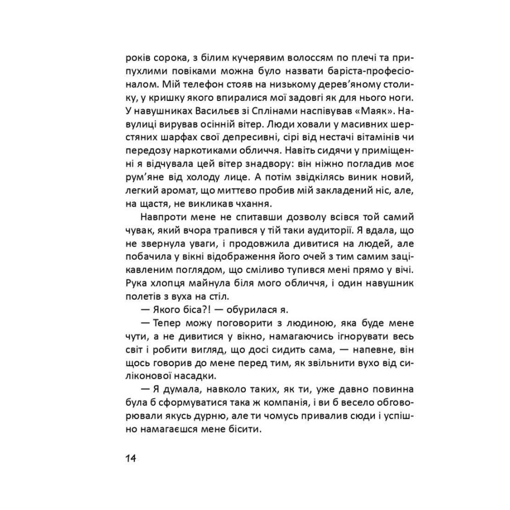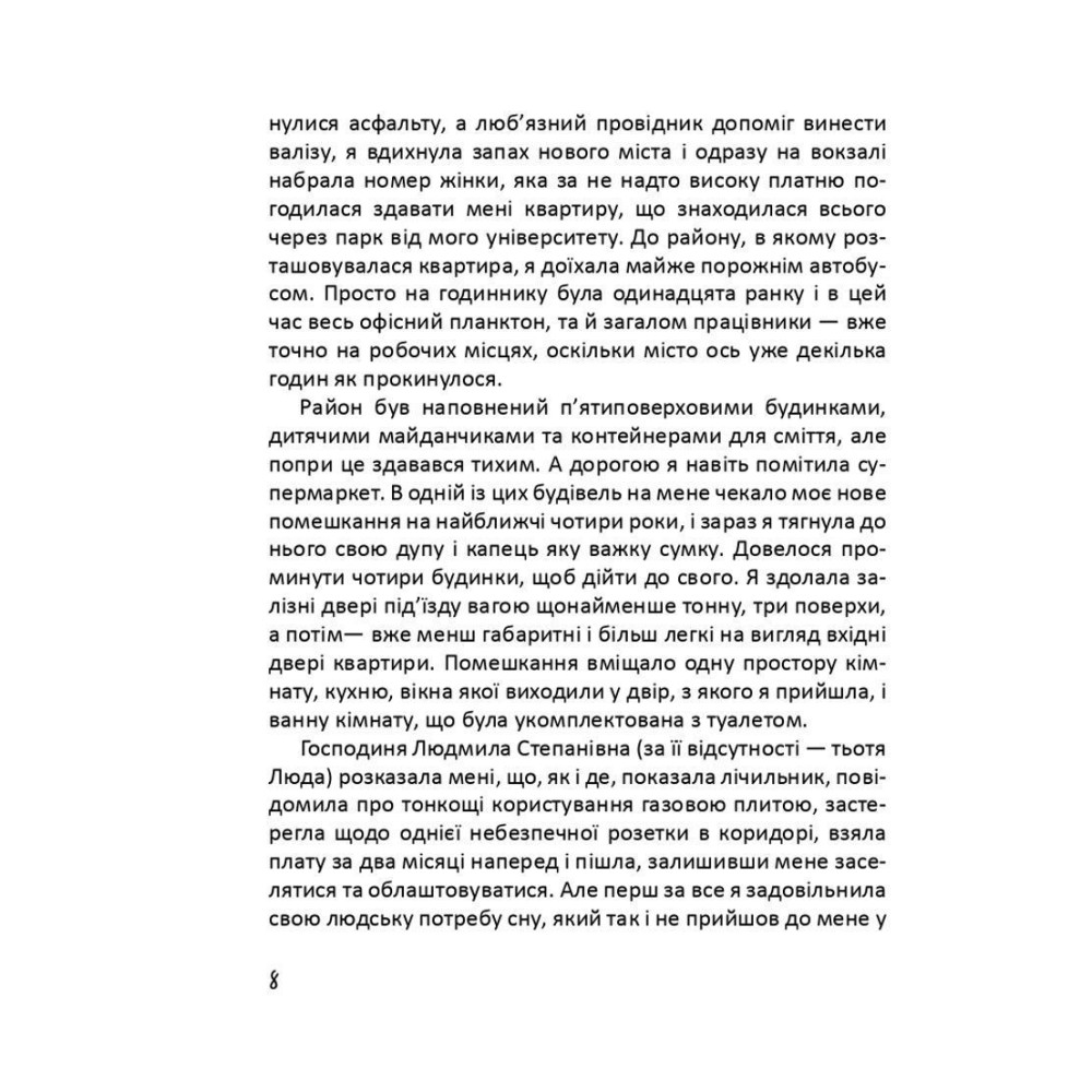 Після переїзду в її житті з’являється чимало нових знайомих, а з ними — захопливі пригоди, жваві вечірки, сміливі вчинки... Проте чи є у цьому строкатому світі щось більше за розваги, глибше ніж секс? Про пошуки чогось незбагненно більшого і вічного прочитаєте у цій книжці.