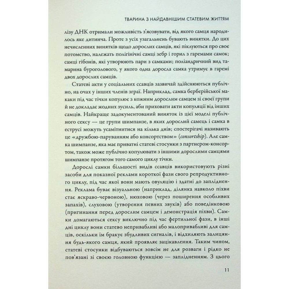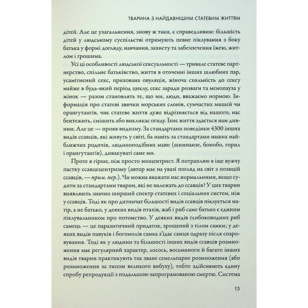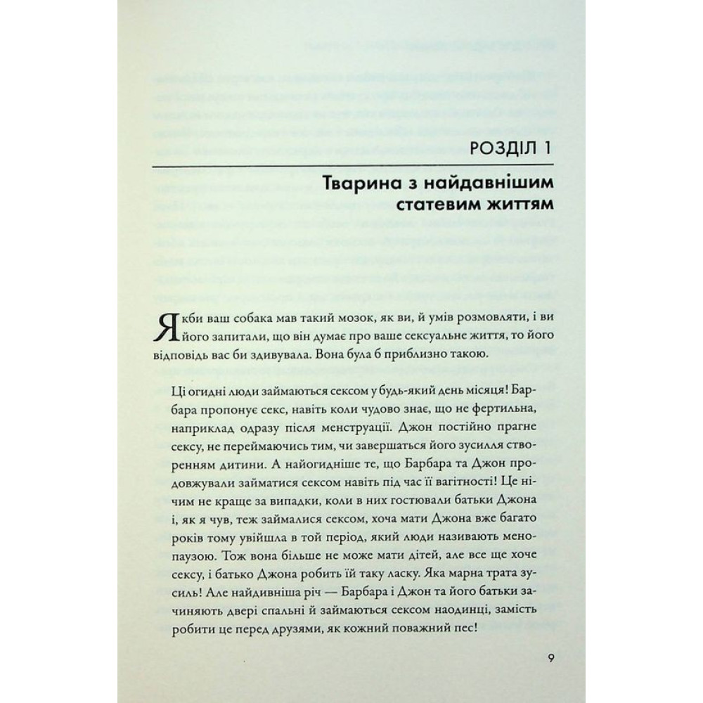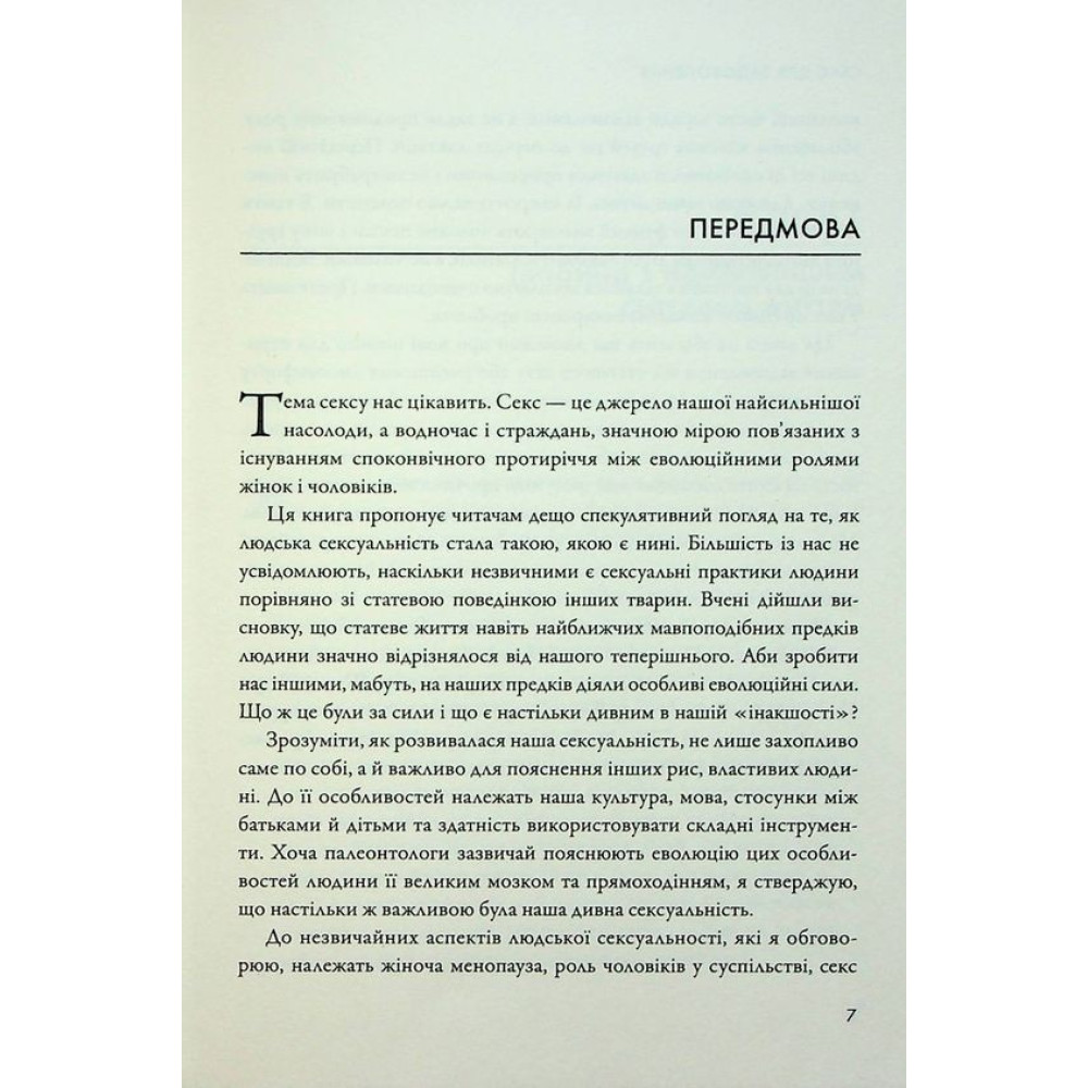 Дотепно та з безліччю оригінальних і переконливих прикладів автор доводить, що сексуальність відіграла таку саму вирішальну роль у нашому підйомі до статусу людини, як великий головний мозок і прямоходіння.