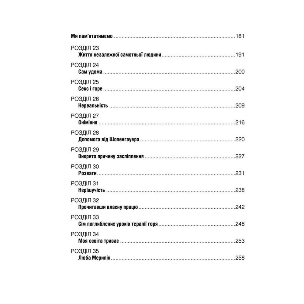 Ірвін і Мерилін Яломи зібрали по крихтах усю мудрість прожитих разом років — тут немає настанов і мотиваційних порад, а є досвід людей, що навчилися приймати невідворотне і зуміли змиритися з неминучою розлукою.