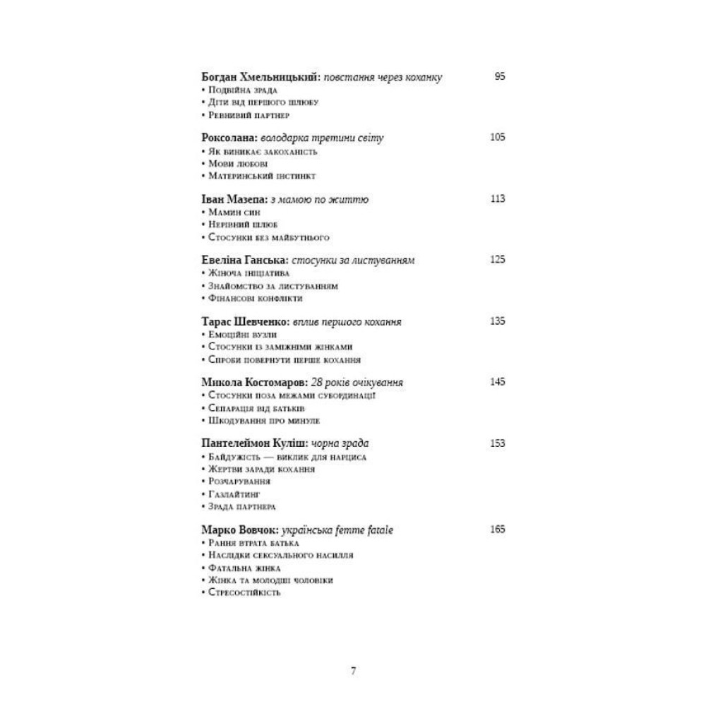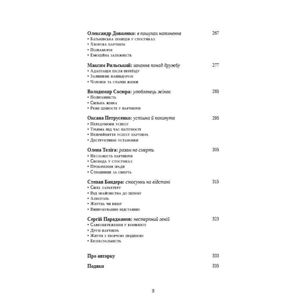 «Відомі українці: психологія стосунків» Олени Шершньової — це унікальне поєднання біографічних історій та глибокого психологічного аналізу, яке дозволяє по-новому поглянути і на відомі постаті, і на власне життя. Через призму особистих драм, виборів і стосунків легендарних українців авторка досліджує те, з чим стикається майже кожен: кохання й розчарування, зраду й ревнощі, аб’юз і газлайтинг, самотність, розлучення, фінансові конфлікти та повторювані сценарії у стосунках.