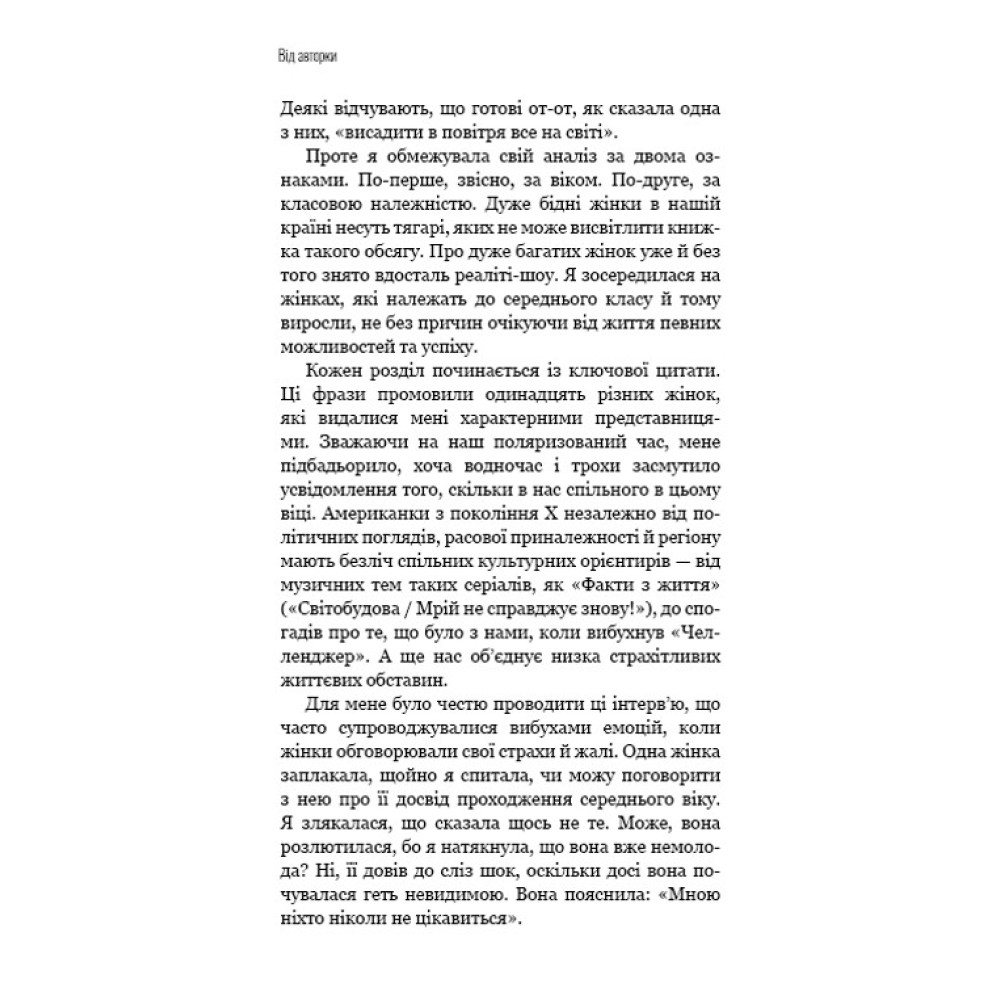 Вони прожили досить спокійне й забезпечене життя, мали змогу робити кар’єру, народжувати дітей, впливати на політичні й соціальні рішення, обирати життя, яке було їм до вподоби. Однак нині більшість із тих, кому виповнилося 40–50 років, почуваються нещасними. Зазвичай для того щоб усунути наслідок, потрібно знайти причину. Ада Келгун пропонує зробити це разом із нею.