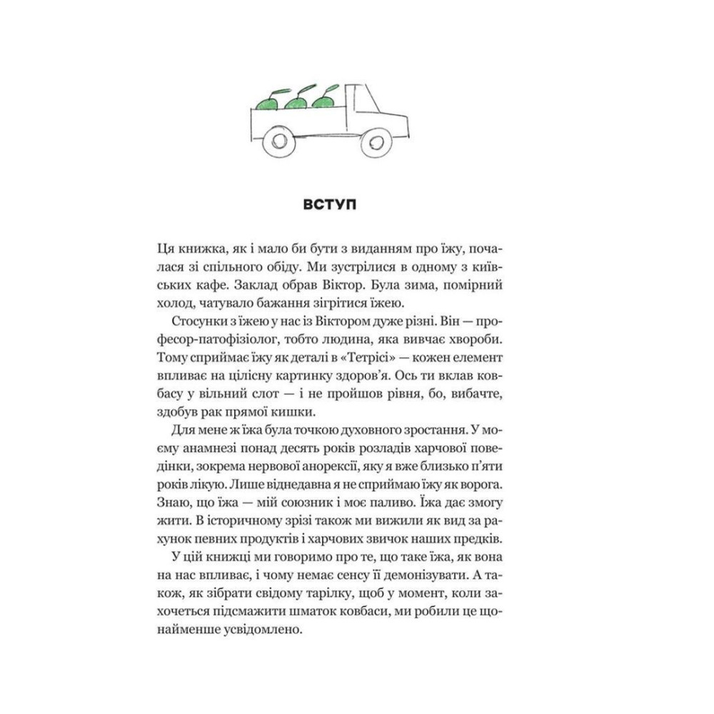 Книгу відкриває інтерв'ю з авторами, що висвітлює їхні позиції щодо харчування й впливу продуктів на організм.