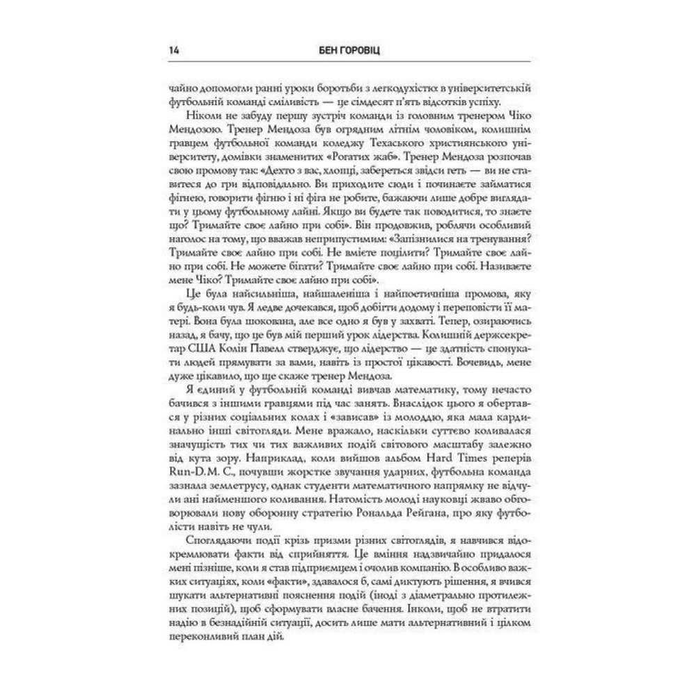 Книга показує, що найважчі речі в бізнесі — це не стратегії чи плани, а моменти, коли доводиться скорочувати команду, змінювати курс компанії, долати паніку, втрачати гроші або приймати непопулярні, але необхідні рішення. Горовіц говорить чесно й детально про те, як переживаються ці ситуації зсередини, і дає поради, які працюють у реальному житті, а не в ідеальних умовах.