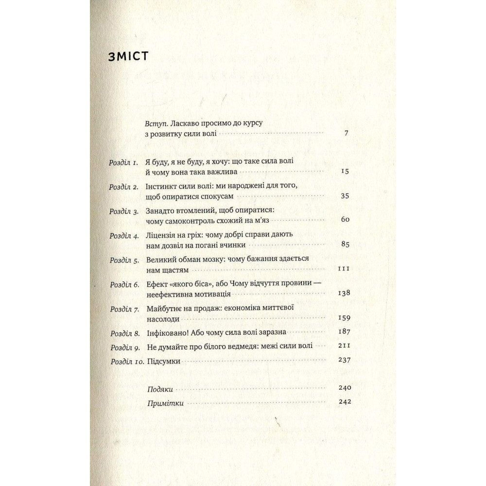 Мова, література, математика, фізика, хімія. А що було б, якби у школах та університетах нас вчили розвивати силу волі? Наскільки успішнішими ми могли б стати? Келлі Макґоніґал допомогла тисячам людей змінитися: кинути пити чи курити, пробігти марафон, зайнятися спортом, створити власний бізнес, налагодити стосунки в сім’ї тощо. Свою методику вона узагальнила в цій книжці — «Сила волі. Шлях до влади над собою».