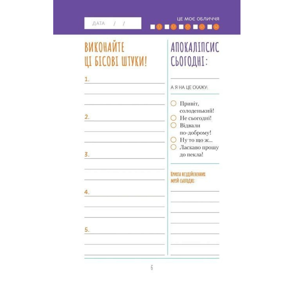 Завдяки інтерактивному нотатнику «Візьмися вже до справи, трясця! Щоденник, який допоможе досягнути мети» за авторством Моніки Свіні ви отримаєте здатність впорядковувати власні справи, позбавлятися розчарування, а також підбивати підсумки всьому тому, що йде до біса добре. У ньому ви знайдете підказки, які допоможуть не відволікатися від виконання завдань і взяти звичку обмірковувати свої дії — вам сподобається.