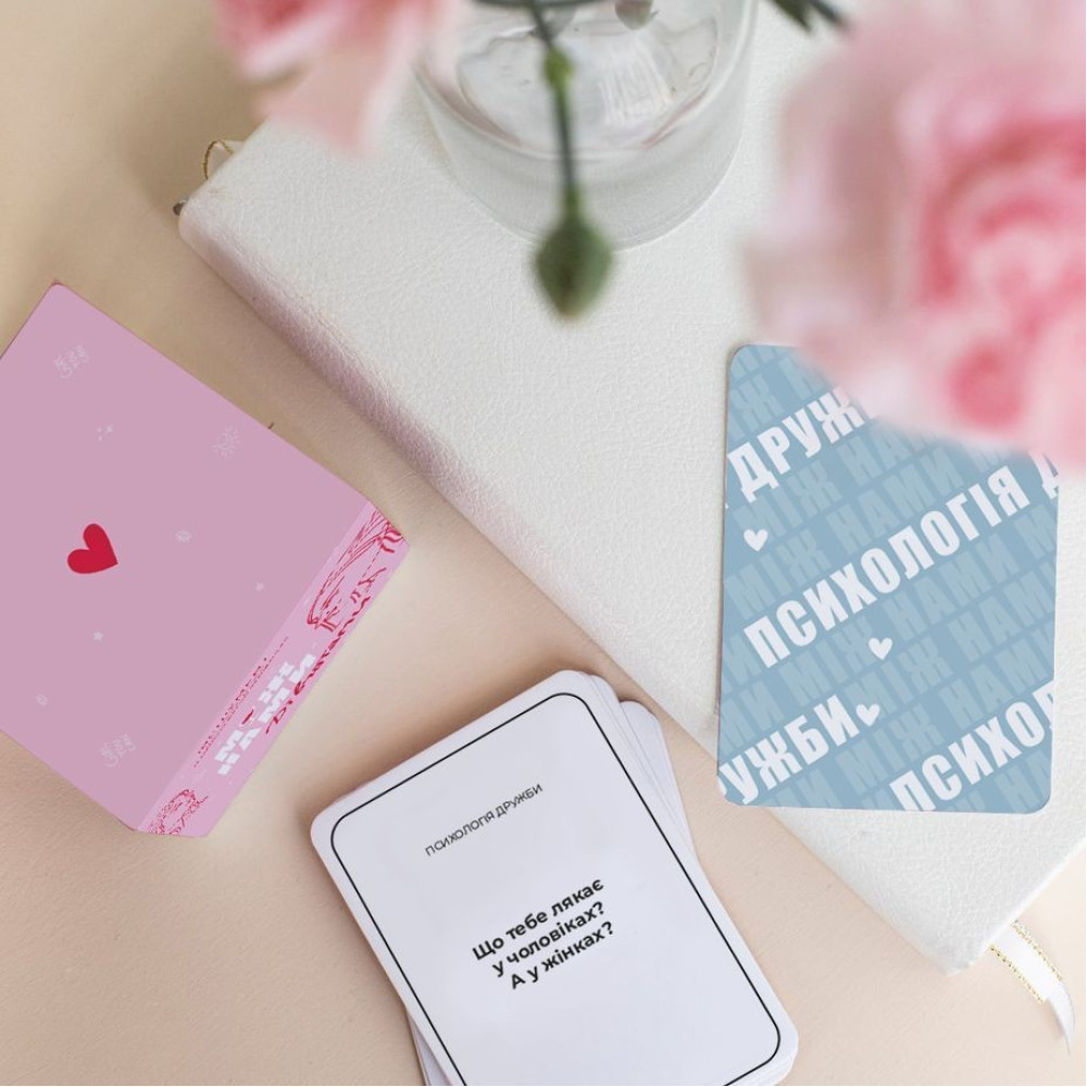. У грі зібрані запитання та завдання, що стимулюють щире спілкування, допомагають обговорювати емоції, мрії та переживання, а також зміцнюють дружні стосунки. Вона ідеально підходить для дівочих вечірок, онлайн-зустрічей або як подарунок для близьких.