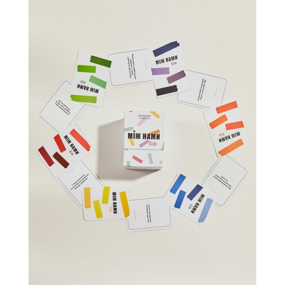 «Між Нами: Kids. Настільна гра для емоційного розвитку та комунікації» — це захоплива гра, створена спеціально для дітей, щоб допомогти їм краще розуміти свої емоції, думки та бажання. Вона вчить говорити про почуття легко й по-дитячому щиро, розвиває емпатію, довіру та впевненість у спілкуванні з дорослими й однолітками.