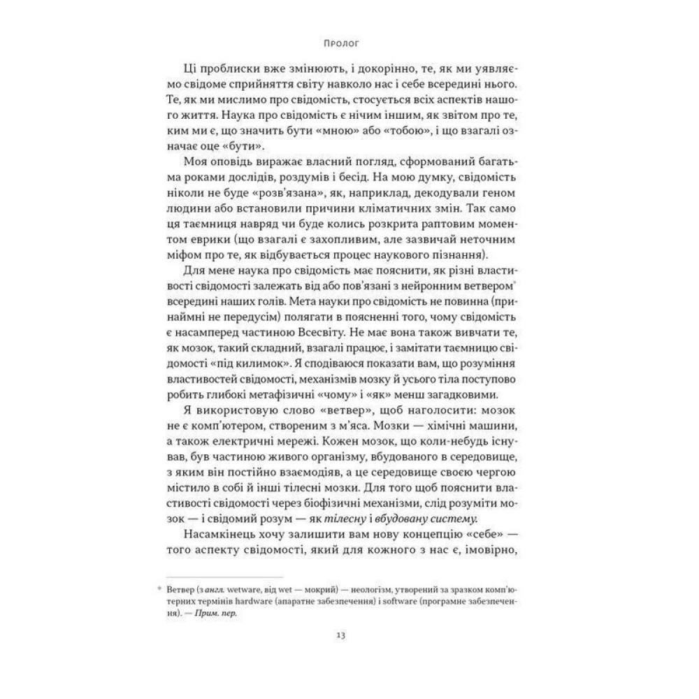 Що може бути більш захопливим за прагнення пізнати свою сутність та осягнути світ довкола? У книжці «Бути собою. Нова наука про свідомість» один з найвидатніших сучасних нейронауковців Еніл Сет пропонує зазирнути у вікно нашої свідомості і побачити своє справжнє «я». Його радикальний аргумент полягає в тому, що ми не відкриваємо світ, а постійно конструюємо та моделюємо його у мозку.