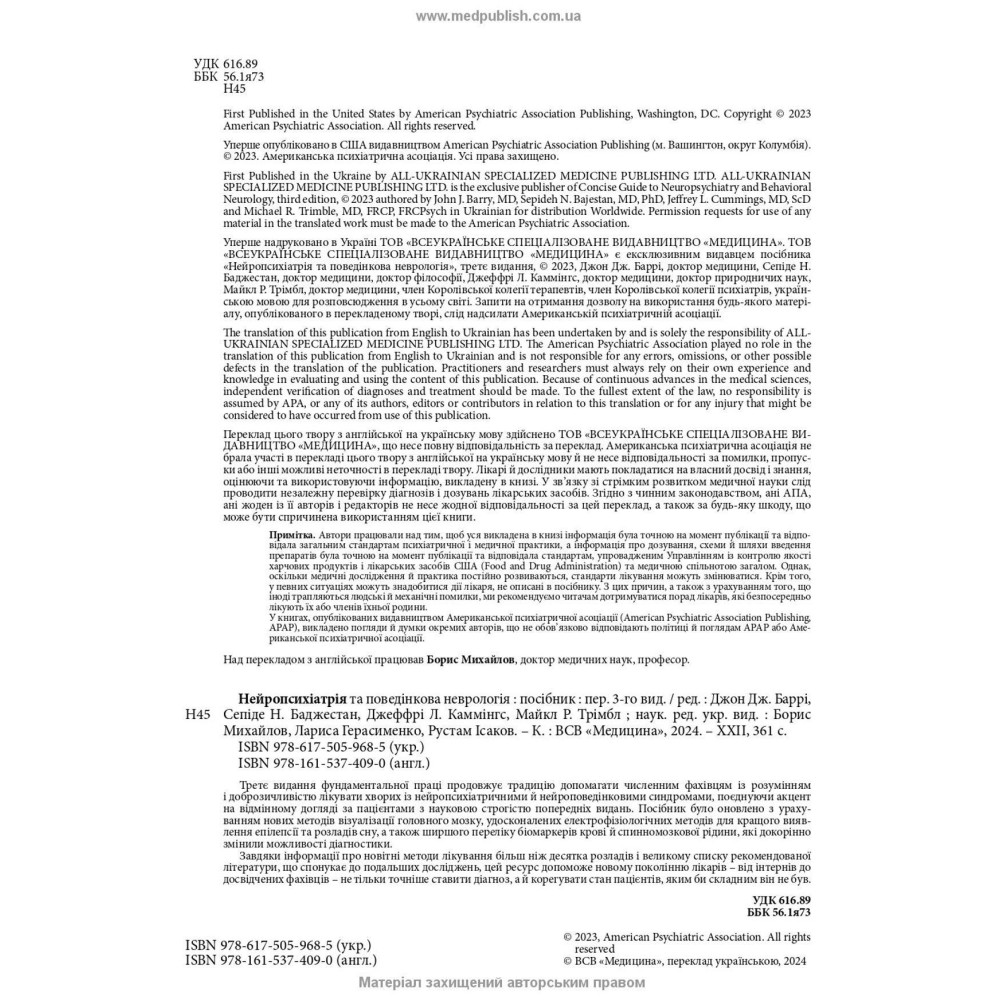 | Автор | Джон Дж. Баррі, Сепіде Н. Баджестан, Джеффрі Л. Каммінгс, Майкл Р. Трімбл та інші; Борис Михайлов, Лариса Герасименко, Рустам Ісаков (наукове редагування) |
