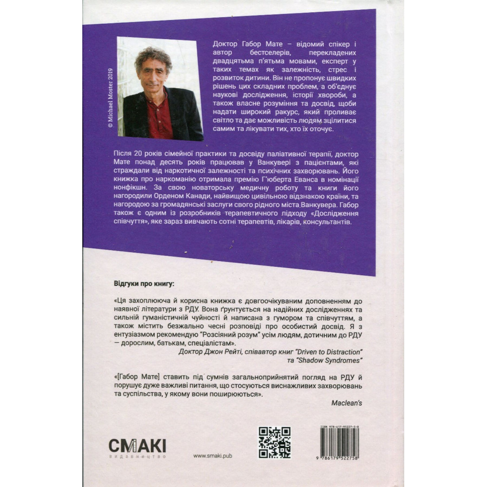 Габор Мате — канадський лікар з досвідом сімейної практики та особливим інтересом до дитячого розвитку, а також спікер й колумніст «The Globe and Mail» та «Vancouver Sun». Написав не одну книгу на тему не лише РДУ, а й стресу, психології розвитку і залежностей.