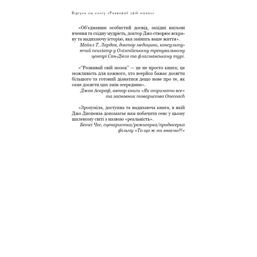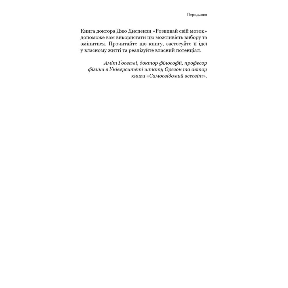 «Розвивай свій мозок. Наука, що змінює розум» — це книга Джо Диспензи про те, як найефективніше використовувати свій мозок. Автор — відомий хіропрактик, нейрофізіолог, автор теорії про зцілення людини силою думок.