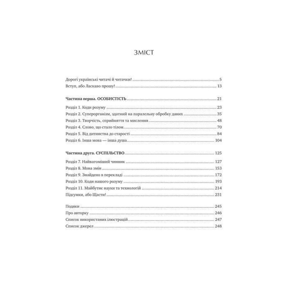 Книга містить практичні вправи про те, як користуватися вербальними системами не тільки для спілкування. Також у нонфікшні є корисні тези про культуру комунікації, зведення про роль цього елемента в розвитку суспільства тощо.