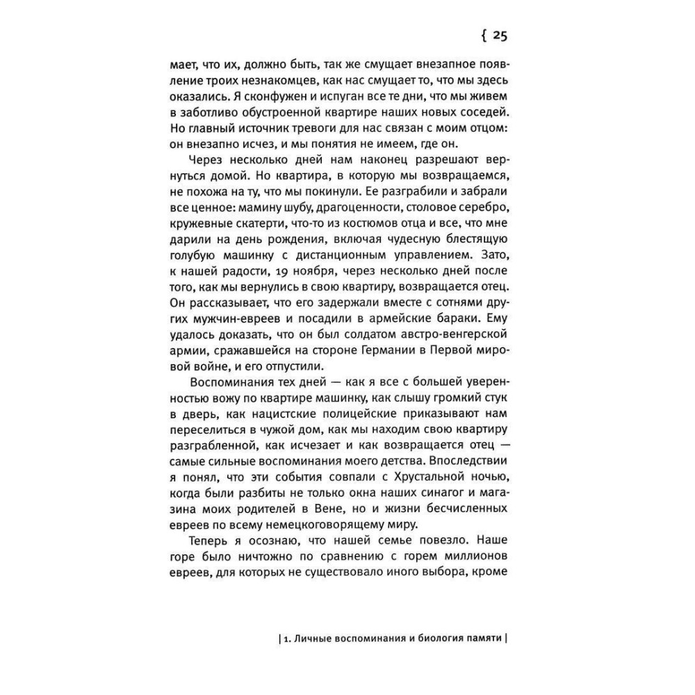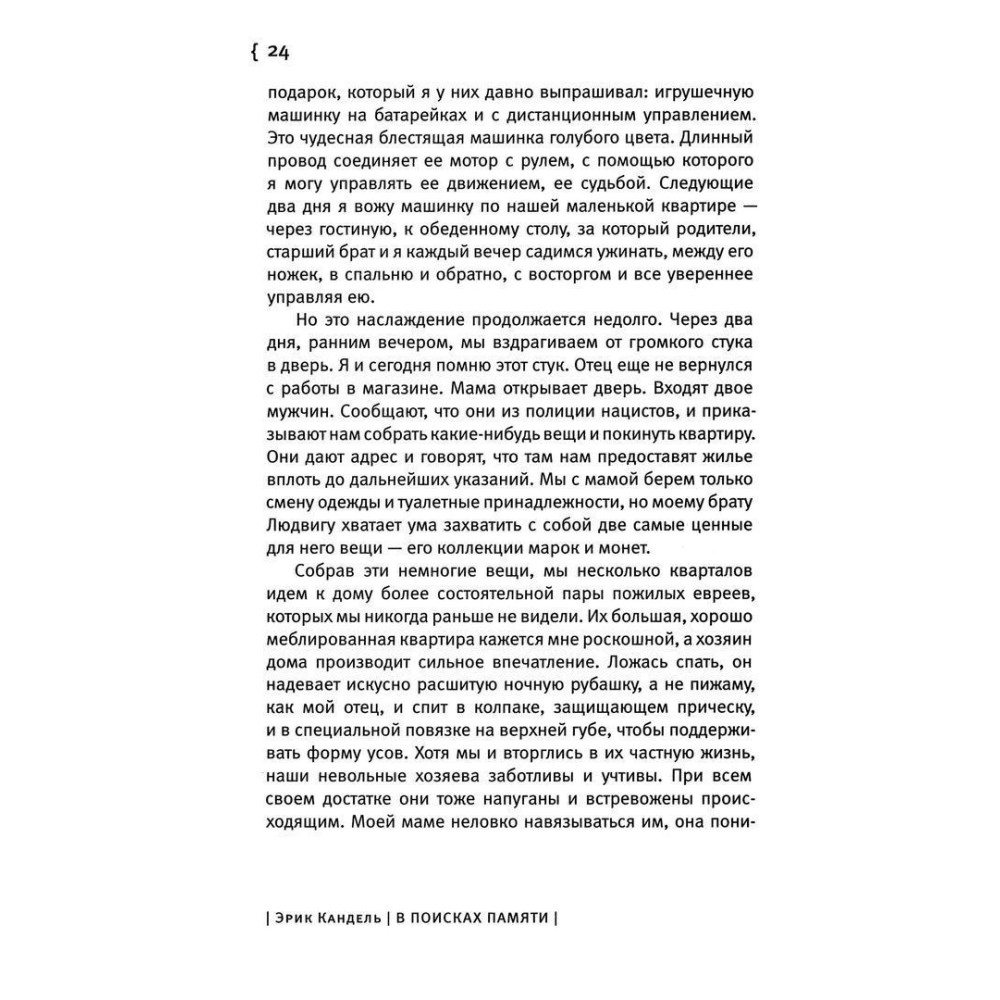 Книга починається зі спогадів про дитинство в окупованому нацистами Відні й описує наукову кар'єру Канделя, від його раннього захоплення історією та психоаналізом до новаторських робіт у галузі вивчення клітинних і молекулярних механізмів пам'яті, за які він удостоївся Нобелівської премії.
