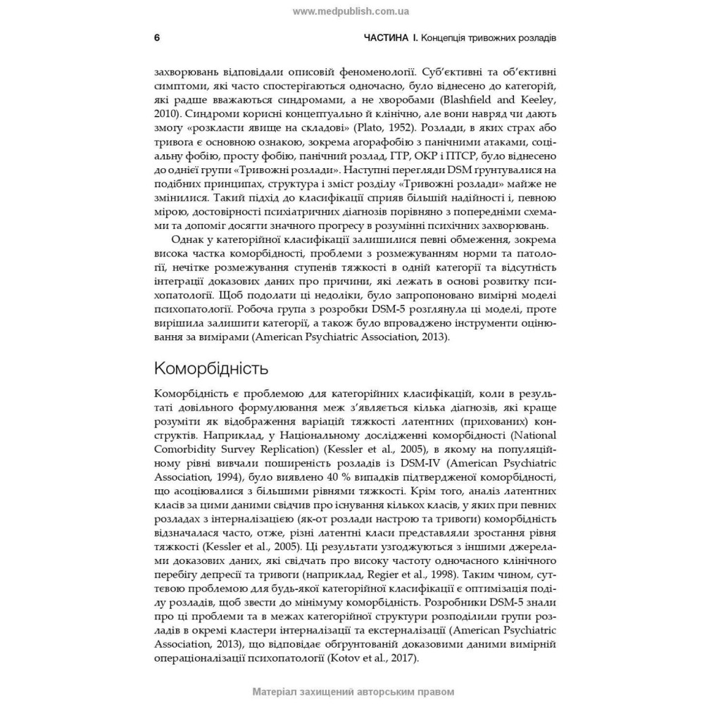 Ґрунтовно висвітлено питання коморбідності, а також специфічні проблеми дітей та осіб похилого віку, окрема увага приділена трансдіагностичним втручанням, таким як Уніфікований протокол Барлоу.