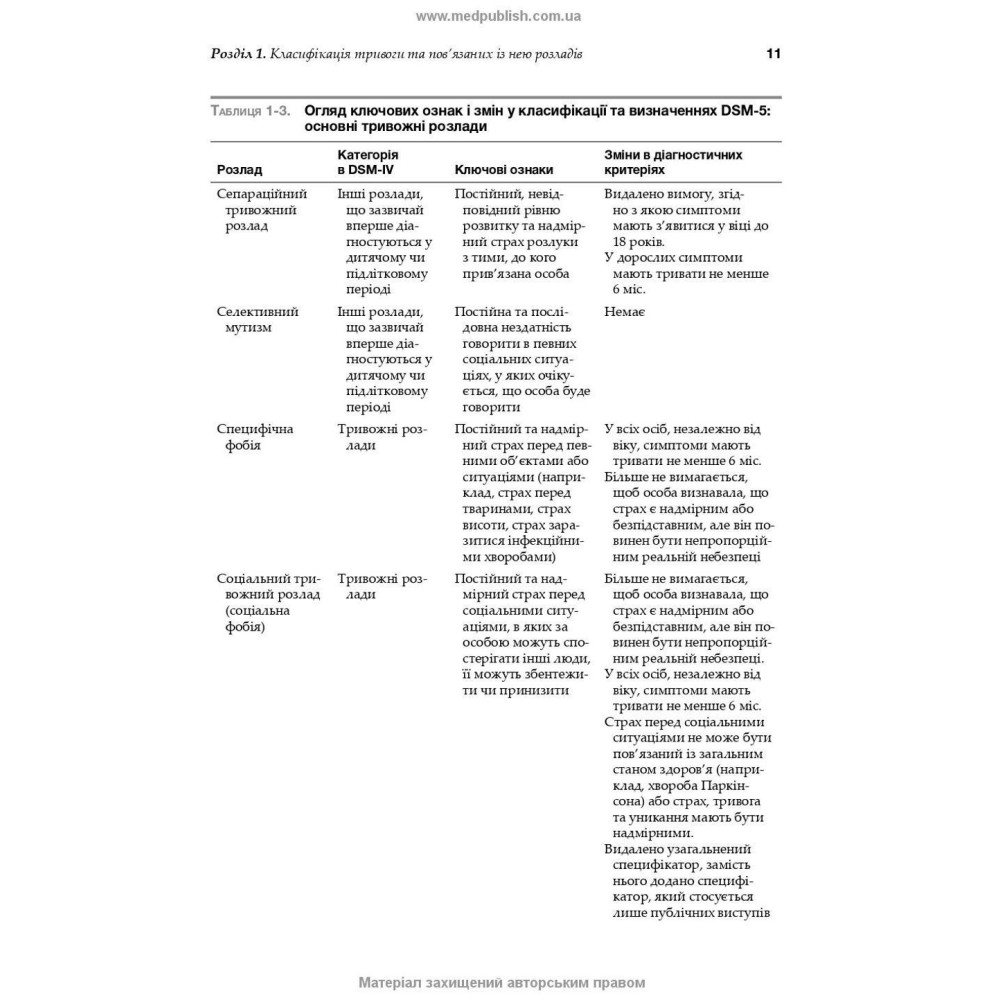 Для конкретних станів, включаючи генералізований тривожний розлад, соціальний тривожний розлад, паніку та агорафобію, специфічні фобії, ОКР, а також стани, пов’язані з травмою і стресом, такі як ПТСР та стійкі форми горя, введено розділи про феноменологію, патогенез і лікування.