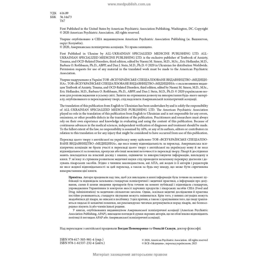 | Автор | Наомі М. Саймон, Ерік Голландер, Барбара О. Ротбаум, Ден Дж. Стайн; Борис Михайлов (науковий редактор укр. видання) |
