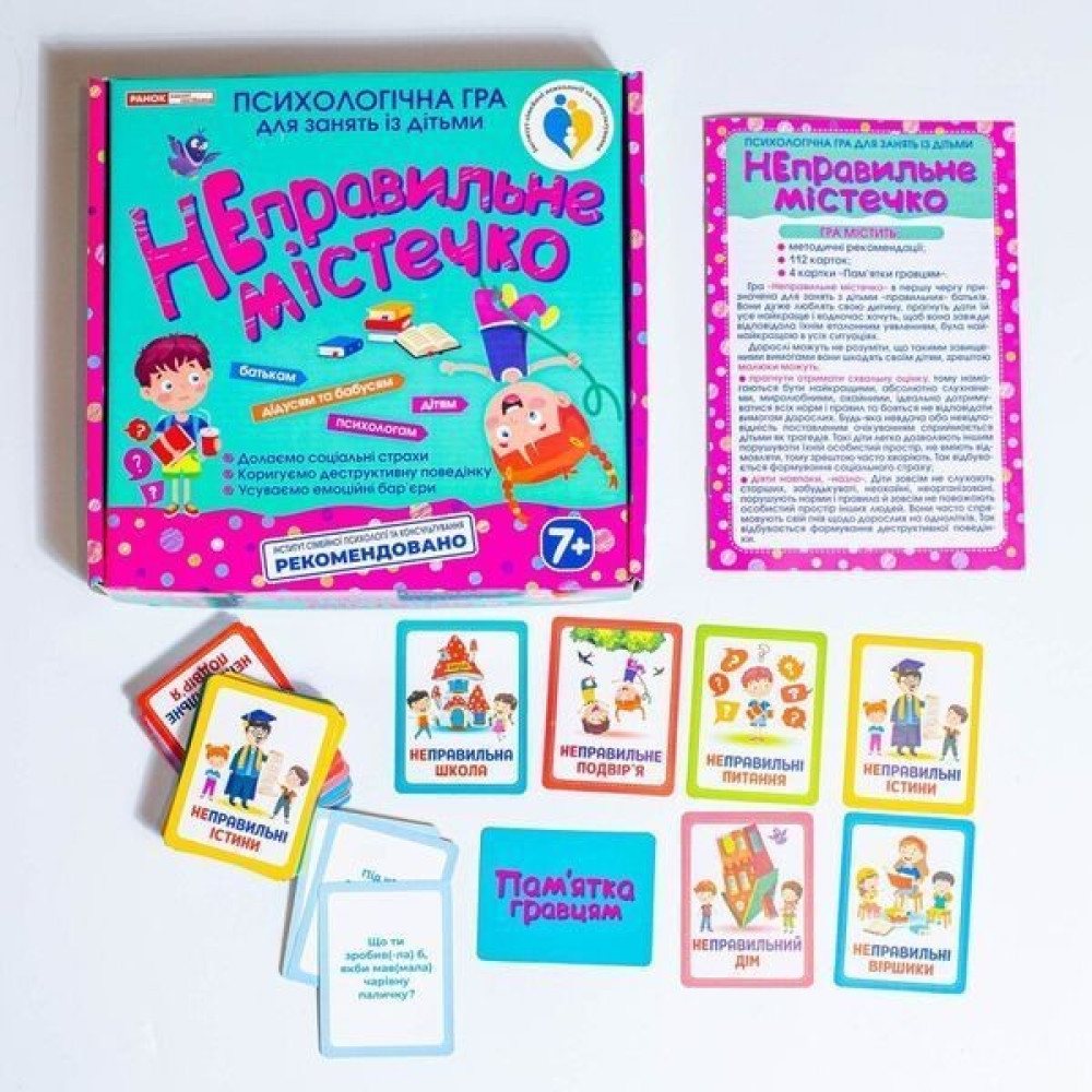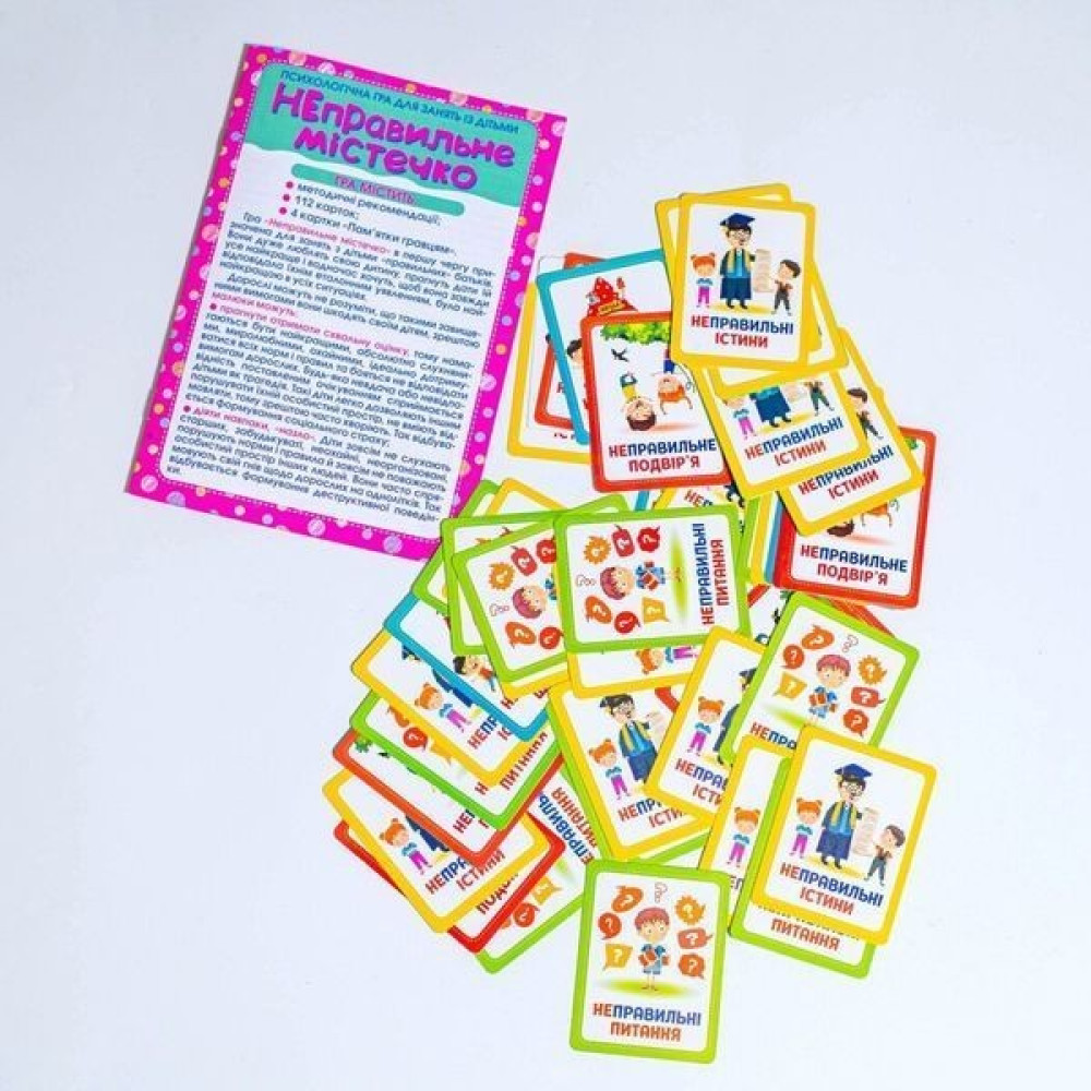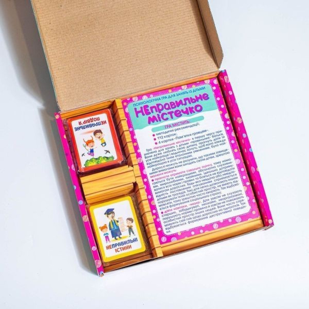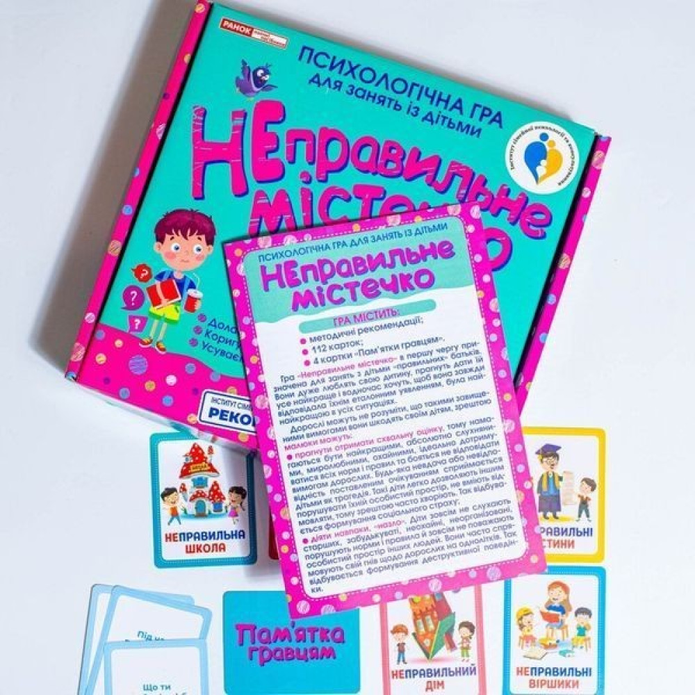 Психологічна гра для занять із дітьми «Неправильне містечко» — це карткова гра, яка доступно вирішує складні питання: