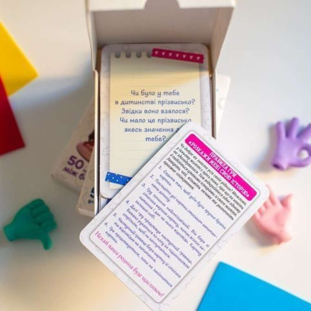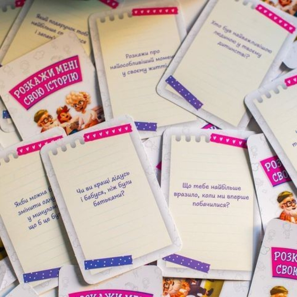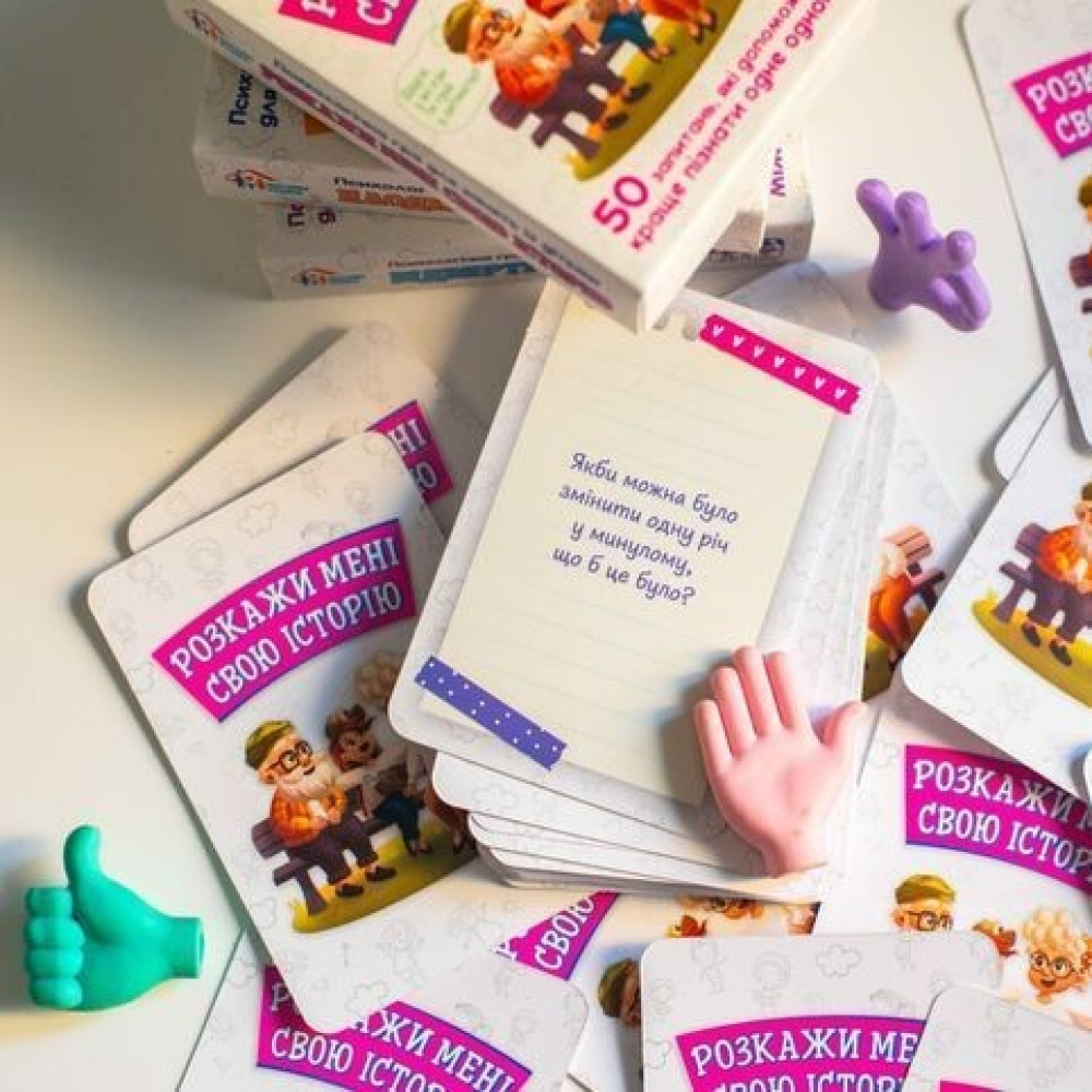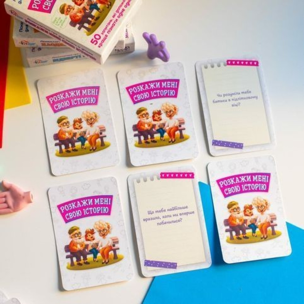 Відкрийте для себе новий спосіб зміцнити родинні зв’язки та дізнатися більше про своїх рідних завдяки психологічній картковій грі «Розкажи мені свою історію», яка ще й створена в зручному кишеньковому форматі.
