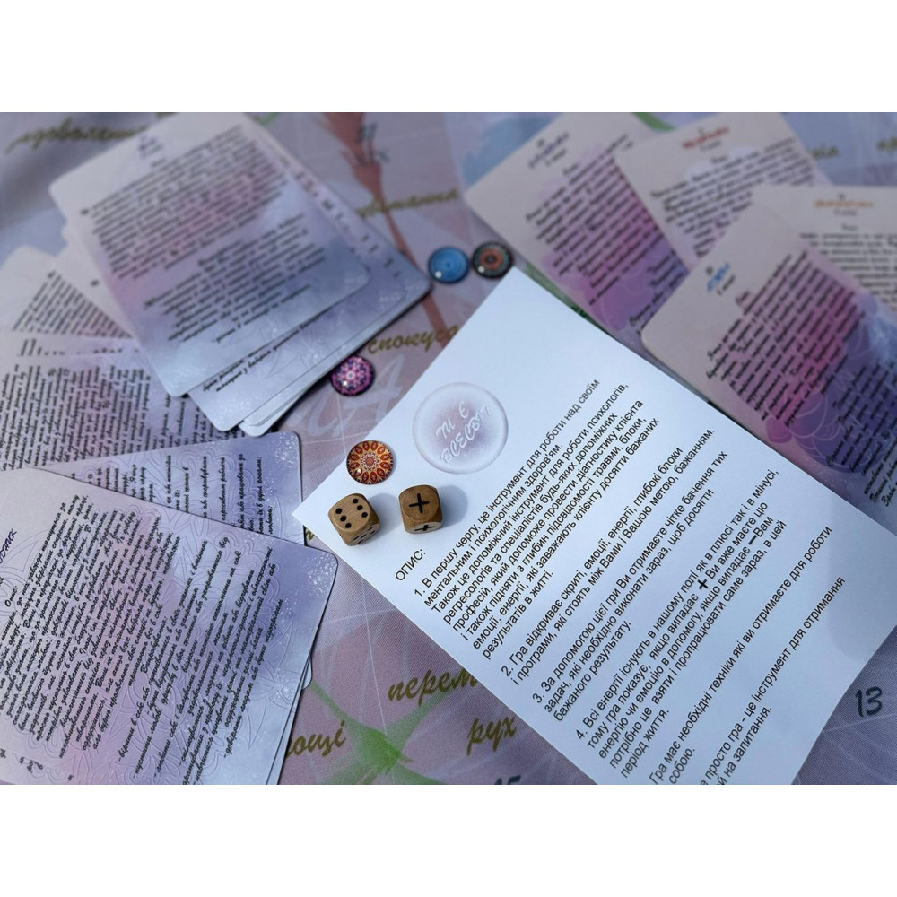«Ти є Всесвіт» — це глибока, трансформаційна психологічна гра, створена Ольгою Чупровою для того, щоб учасник занурився у внутрішній простір душі, тіла та духу. Вона допоможе зрозуміти взаємозвʼязок емоцій, енергій та чакр, дослідити їх у позитивному й негативному аспектах і віднайти шлях до внутрішньої цілісності.