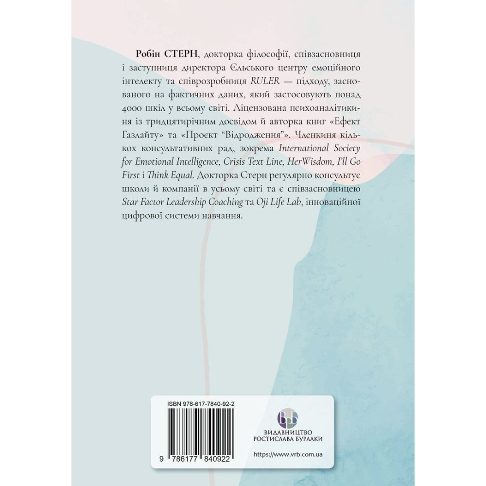 Робін Стерн — докторка філософії, співзасновниця і заступниця директора Єльського центру емоційного інтелекту та співробітниця RULER — підходу, заснованого на фактичних даних, який застосовують понад 4000 шкіл у всьому світі. Ліцензована психоаналітикиня із тридцятирічним досвідом й авторка книг «Ефект Газлайту» та «Проєкт "Відродження"». Членкиня кількох консультативних рад, зокрема International Society for Emotional Intelligence, Crisis Text Line, HerWisdom, I'll Go First і Think Equal. Докторка Стерн регуярно консультує школи й компанії в усьому світі та є співзасновницею Star Factor Leadership Coaching та Oji Life Lab, інноваційної цифрової системи навчання.