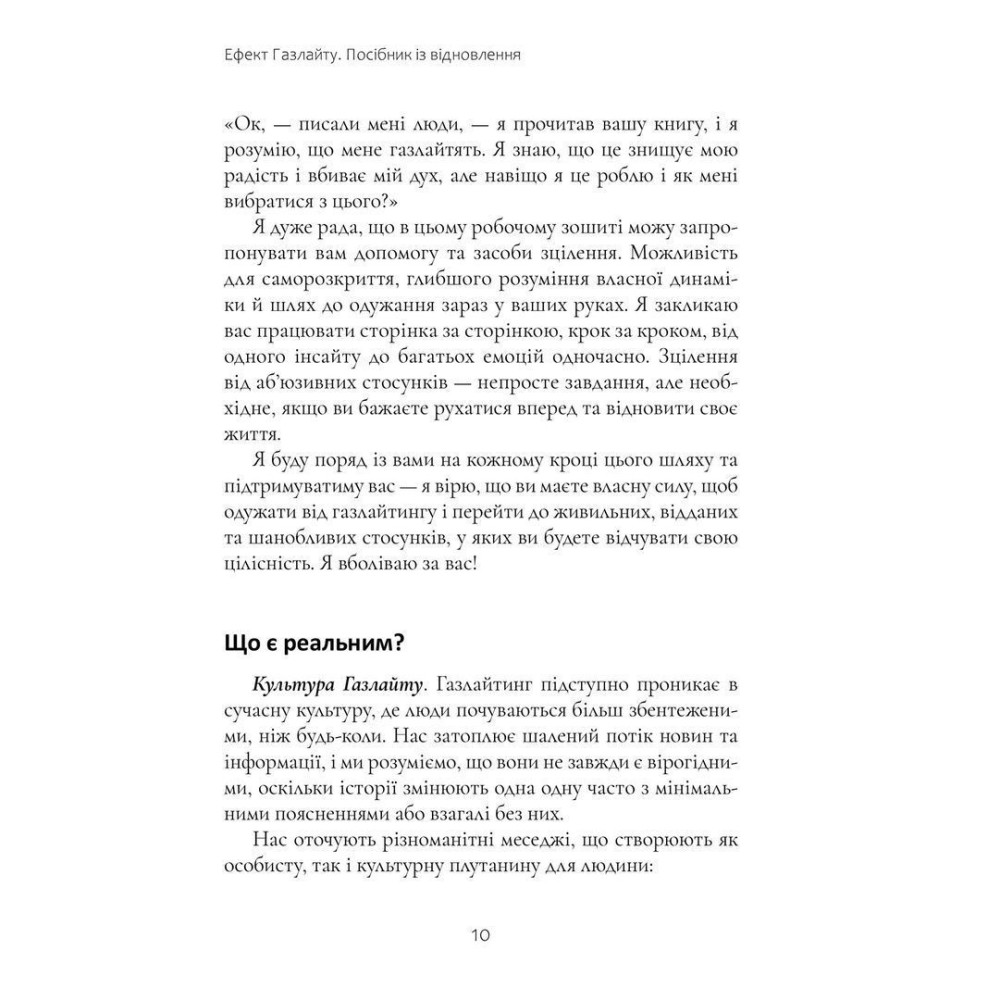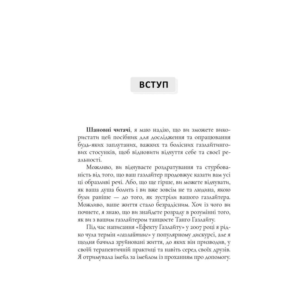 Книжка за авторством Робін Стерн «Ефект Газлайту. Посібник із відновлення: Ваш особистий шлях зцілення від емоційного насильства» не лише пояснює явище газлайту, а й призначена для дослідження та опрацювання будь-яких заплутаних, важких та болісних стосунків, аби допомогти читачеві відновити відчуття себе та своєї реальності.