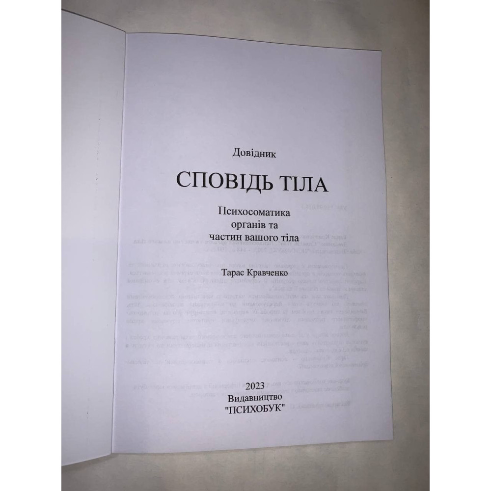 З книги «Довідник «Сповідь тіла». Психосоматика органів та частин вашого тіла» від Тараса Кравченка можна почати шлях власного одужання, а також шлях допомоги іншим у напрямку психосоматики.