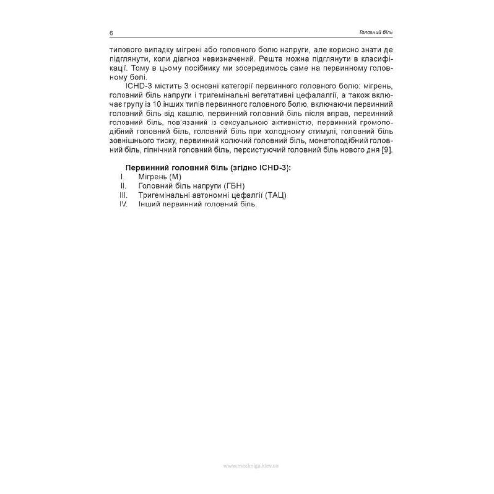 Для студентів медичного факультету вищих навчальних закладів другого (магістерського) рівня вищої освіти, лікарів інтернів-неврологів, неврологів, лікарів сімейної медицини щодо вивчення питань організації якісної та дієвої допомоги хворим із болем голови.