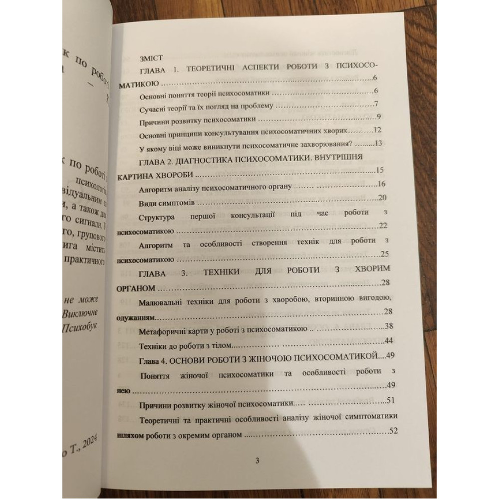 Книга від Тетяни Павленко «Практичний посібник по роботі з психосоматикою «Сенси здоров'я» не лише розповість детально про теоретичну складову психосоматики, а й надасть всі дані, необхідні для практики. Вона також містить універсальні техніки по роботі з психосоматикою, а також методи, які підійдуть у роботі з метафоричними асоціативними картами.