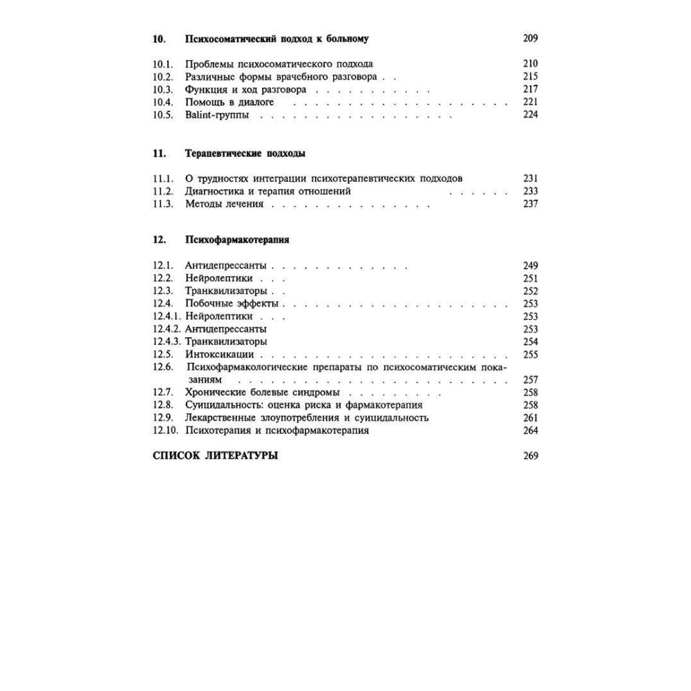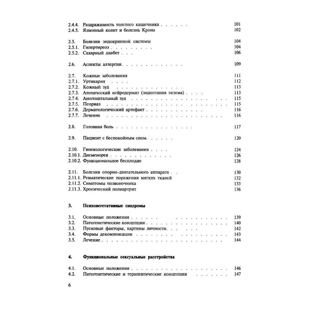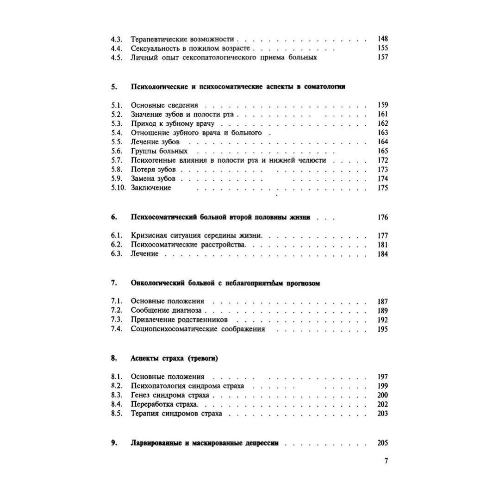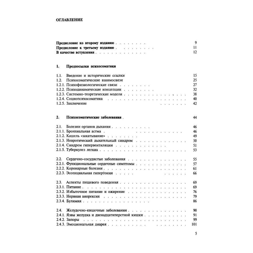 Ця робота складена дещо незвично для пересічного читача. Досить подивитися зміст, щоб у цьому переконатися. Теоретична частина змінюється детальним аналізом «класичних» психосоматичних захворювань. Далі йдуть розділи, присвячені психологічним і психосоматичним аспектам у соматології, онкології. Особливий інтерес становить розділ «Психосоматичний хворий другої половини життя». В окремих розділах автори детально зупиняються на проблемах страху і ларвірованої депресії, яким присвячена численна і нерідко суперечлива література.