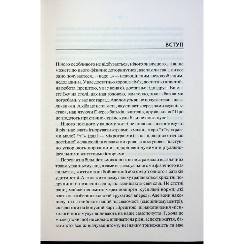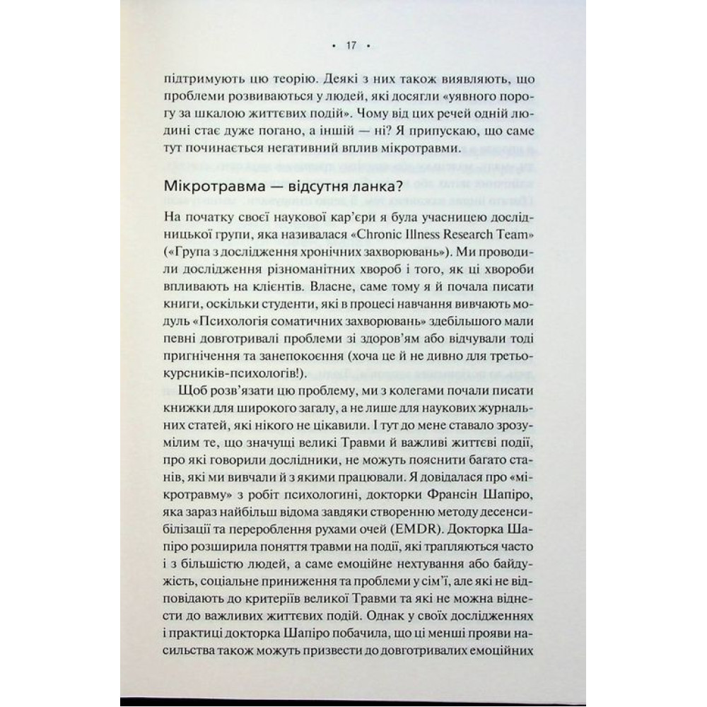 Проте людина може почуватися погано навіть через незначні, на перший погляд, щоденні ситуації. Складні сімейні стосунки, стрес на роботі, газлайтинг та пасивна агресія — це лише кілька прикладів того, що авторка називає мікротравмами, під вагою яких може зламатися кожен.