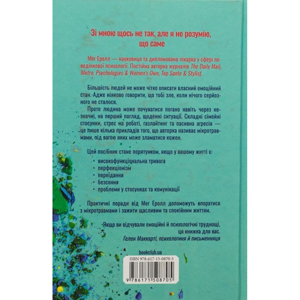 Практичні поради від Мег Еролл, що містяться у книзі «Мікротравми. Як не дати дрібницям зруйнувати життя», допоможуть впоратися з мікротравмами і зажити щасливим та спокійним життям.