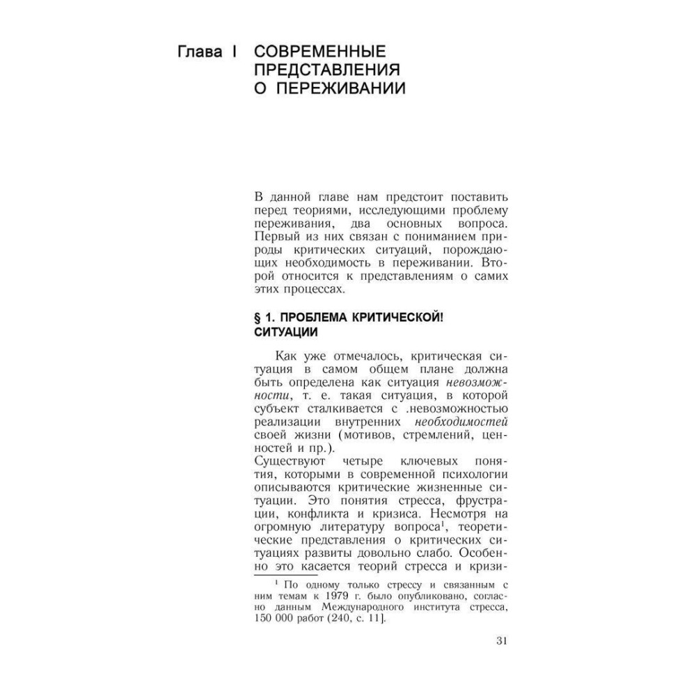 Монографію «Психология переживания» за авторством Федіра Є. Василюка присвячено дослідженню критичних життєвих ситуацій та процесів їх подолання.