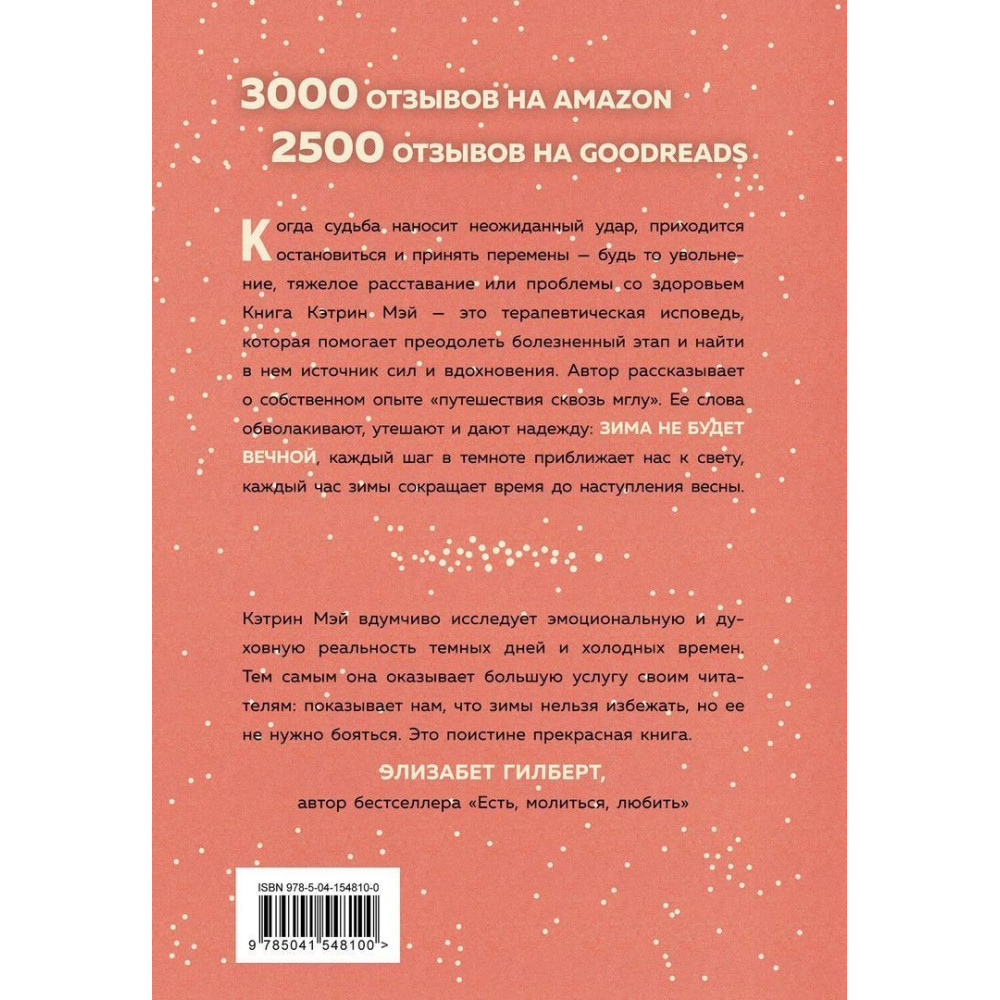 Кетрін Мей у своїй книзі «Зима не будет вечной. Искусство восстановления после ударов судьбы» розповідає про власний досвід «подорожі крізь імлу». Її слова обволікають, втішають, і дають надію: зима не буде вічною, кожен крок у темряві наближає нас до світла, кожна година зими скорочує час до настання весни.