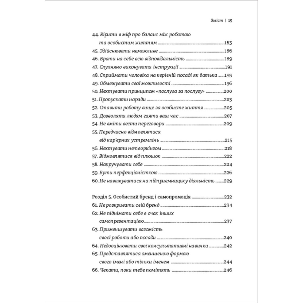 Авторка у своїй книзі розглядає 133 помилки, яких жінки припускаються у роботі та пропонує способи, як їх уникати надалі.