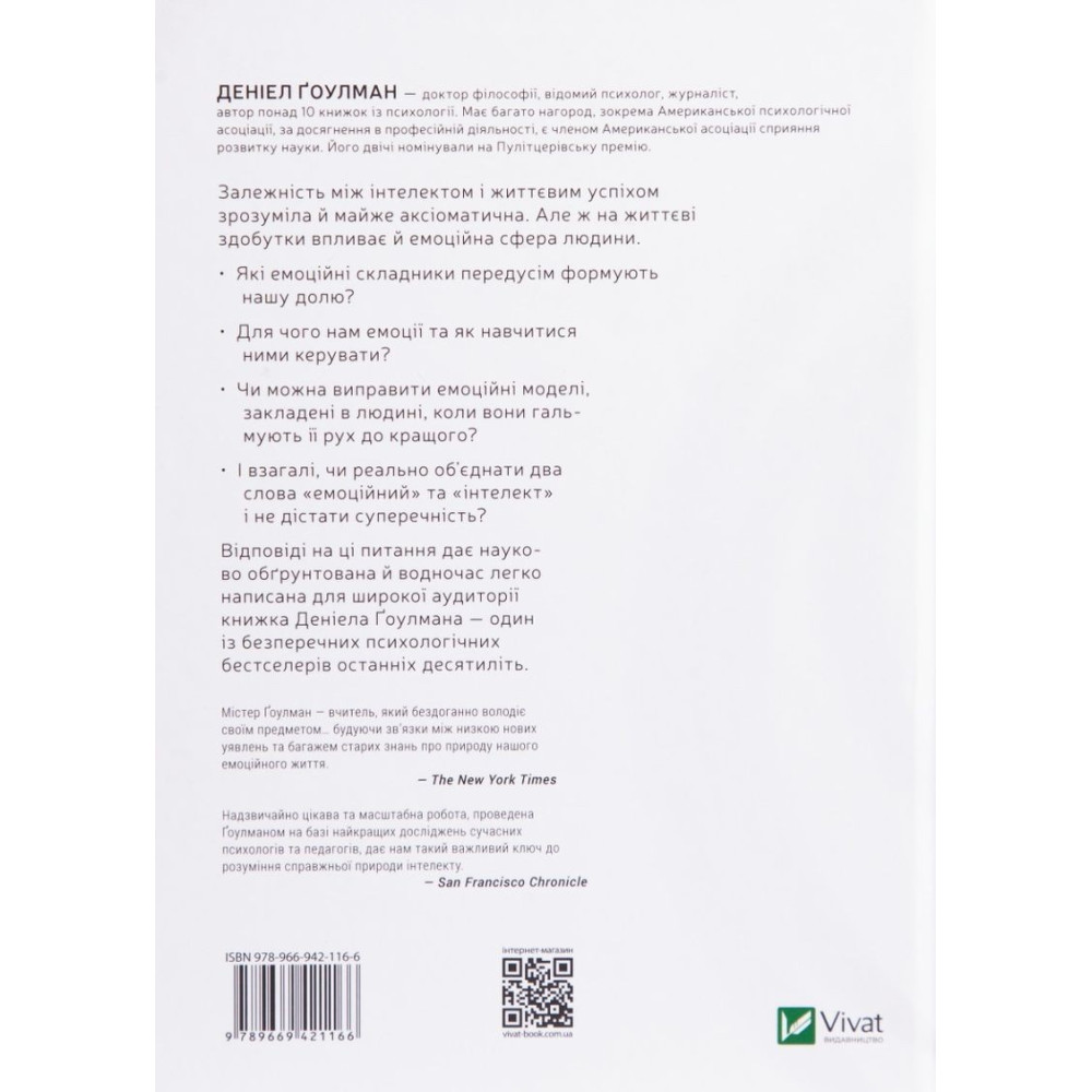 Відповіді на ці питання дає оперта на наукову базу і водночас легко написана для широкої аудиторії праця Ґоулмана, яка є одним із безперечних психологічних бестселерів останніх десятиліть.