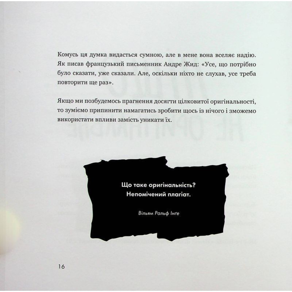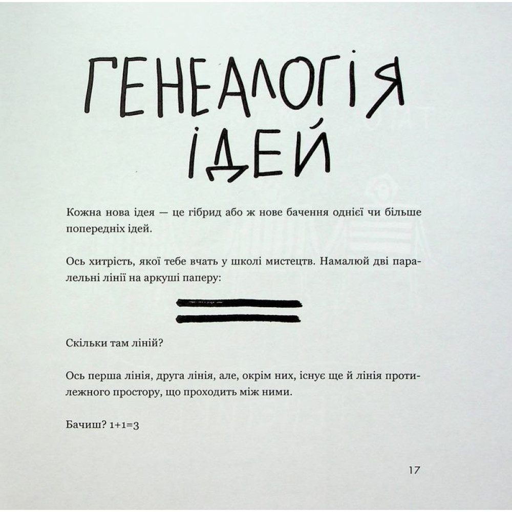 Книжка розповість, як це зробити, щоб не просто наслідувати інших, а створювати щось нове! Завдяки наведеним прикладам, ілюстраціям, порадам ви навчитеся переробляти та переосмислювати чужі ідеї та народжувати власні шедеври. Тож шукай, наслідуй, твори!