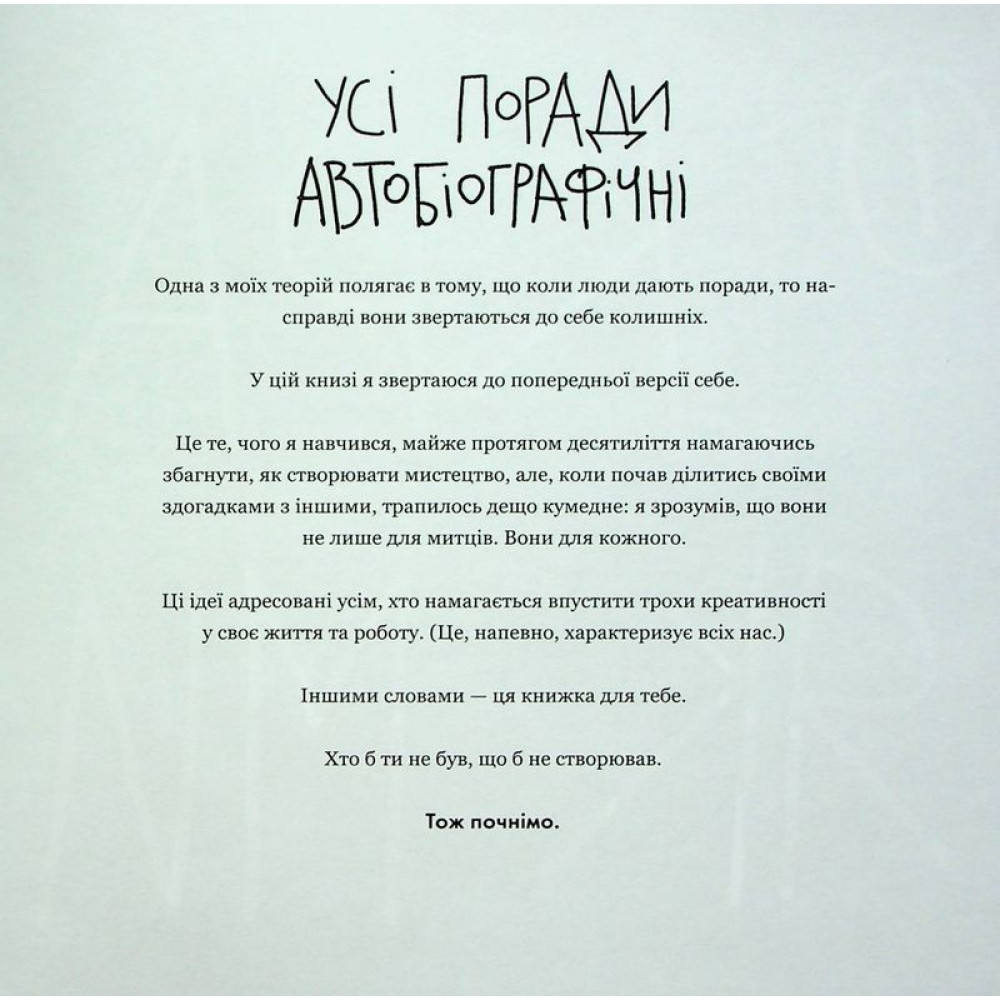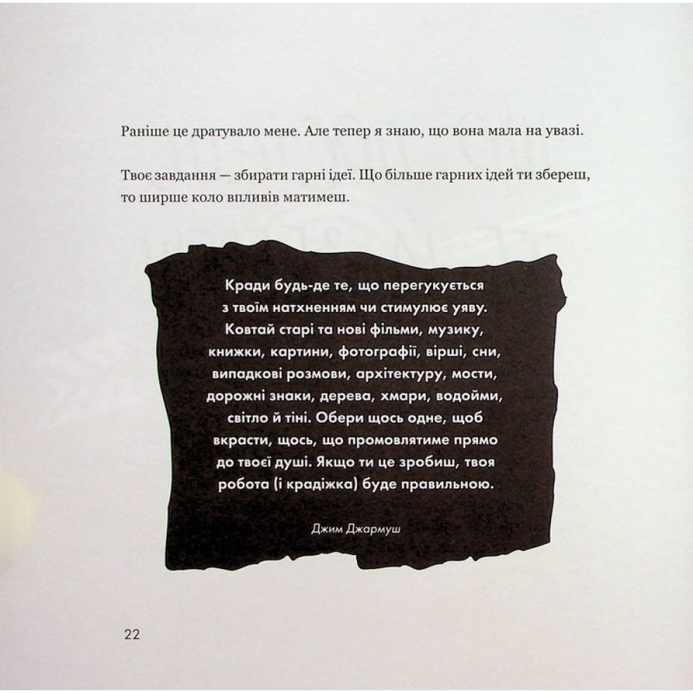 «Кради як митець. Креативні «фішки», про які тобі ніхто не розповість» — маніфест до всіх творчих людей, тобто до вас (ким би ви не були за фахом та чим би не займалися у житті!).