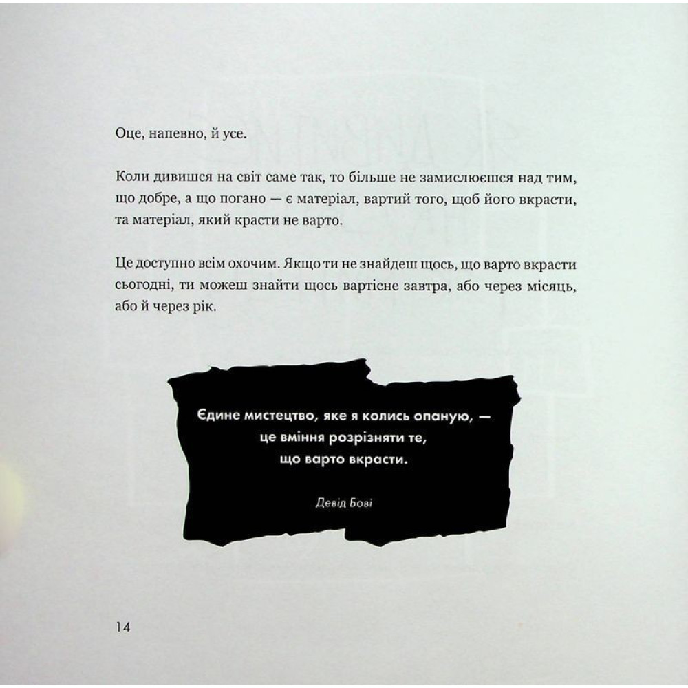 Остін Клеон — відомий художник, дизайнер, письменник й просто непересічна особистість — створив оригінальний, повний чудових ілюстрацій, прикладів та вправ путівник, що допоможе відкрити чи посилити художні якості вашого характеру. «Мислити творчо може кожний!», — стверджує автор. У світі ніщо не є оригінальним, ідеї не беруться з повітря — їх можна «вкрасти»! Тож відкрийте серце для творчості й «крадіть» чесно.