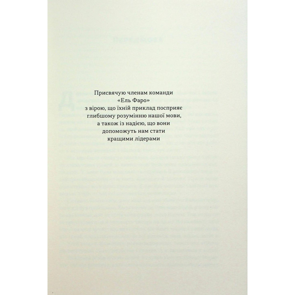 У новій книжці «Мова лідерства. Як побудувати дієву комунікацію в команді» Девід Марке, колишній капітан ВМС США та автор бестселера «Розверніть корабель», пропонує менеджерам і лідерам наступний крок у розвитку їхніх компаній: підвищити спроможність колективу через ефективне спілкування. Розбираючи напружені ситуації у внутрішніх комунікаціях, Марке показує, як навіть невеликі зміни в мовленні можуть сприяти великим змінам у робочій атмосфері та результатах команди.