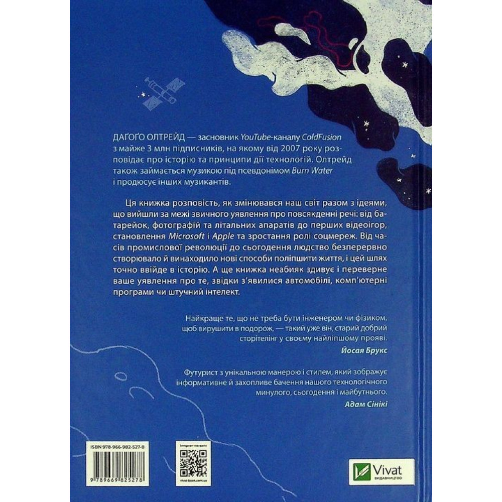 Від часів промислової революції до сьогодення людство безперервно створювало й винаходило нові способи поліпшити життя, і цей шлях точно ввійде в історію. А ще книжка неабияк здивує і переверне ваше уявлення про те, звідки з’явилися автомобілі, комп’ютерні програми чи штучний інтелект.