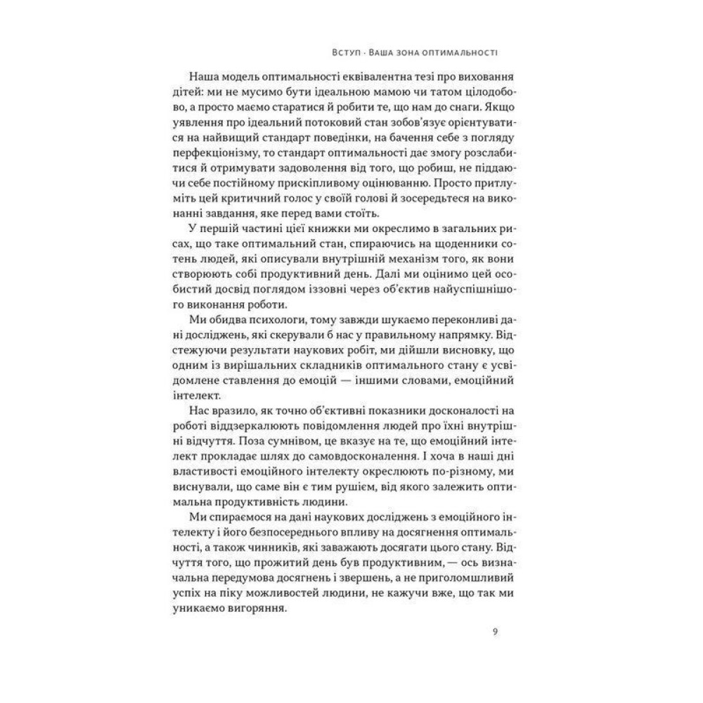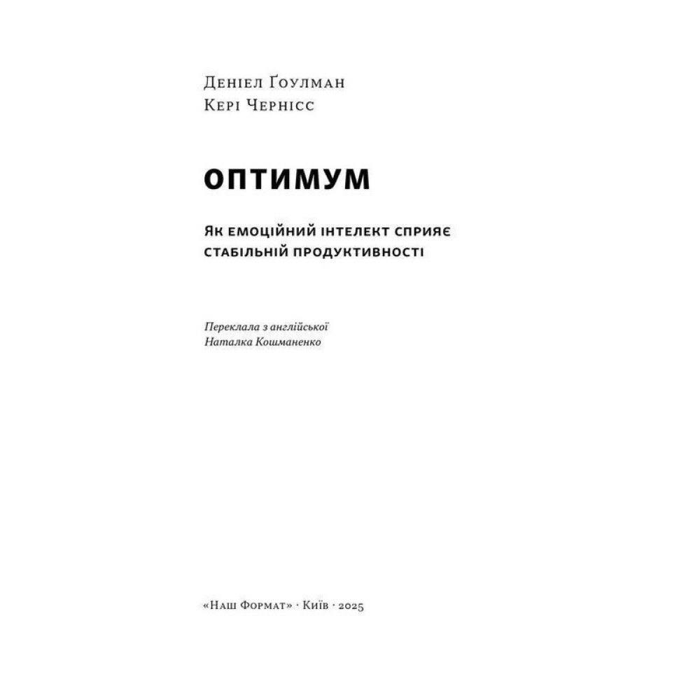 Книжка «Оптимум. Як емоційний інтелект сприяє стабільній продуктивності» від Деніела Ґоулмана та Кері Чернісса ґрунтується на дослідженнях, де сотні людей описували внутрішній механізм того, як створюють собі продуктивний день.