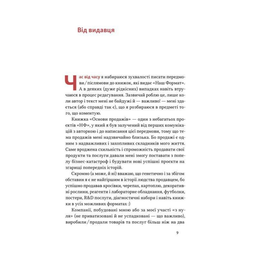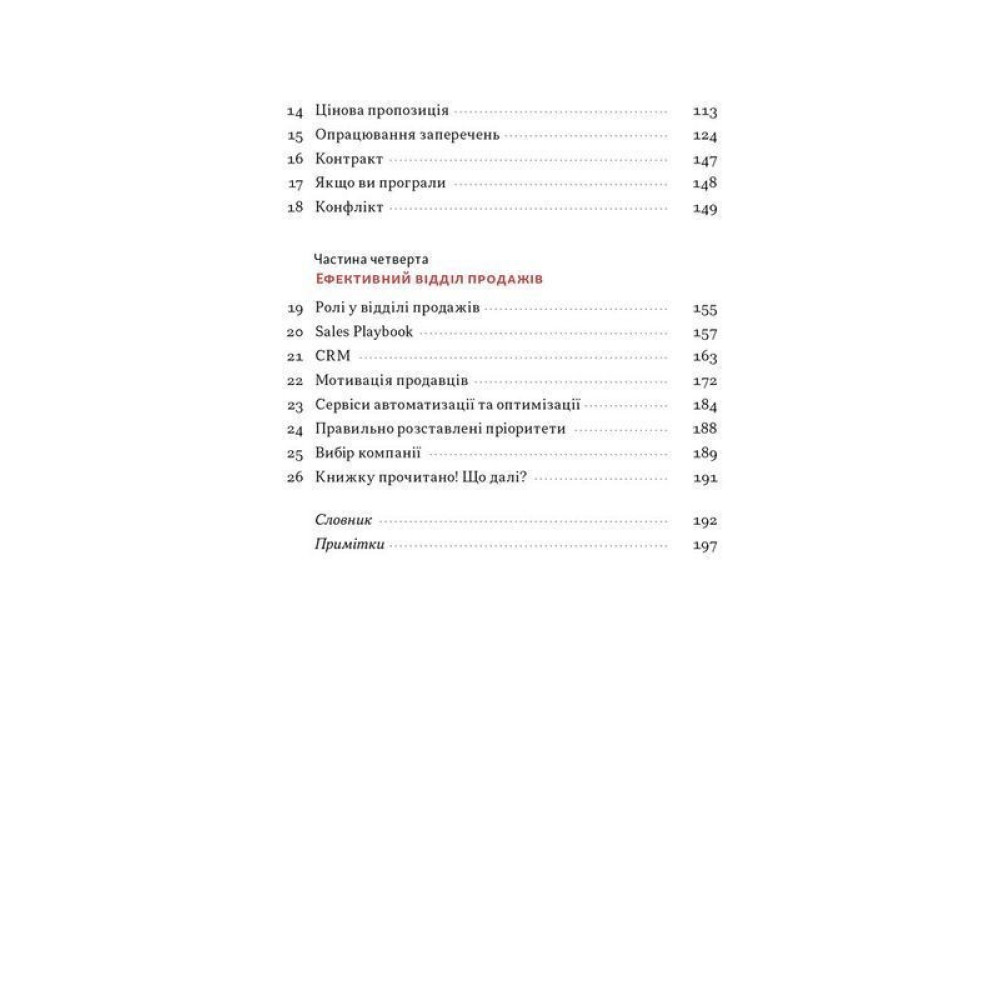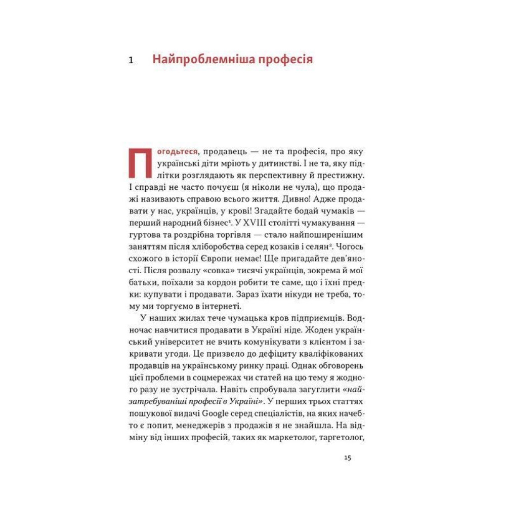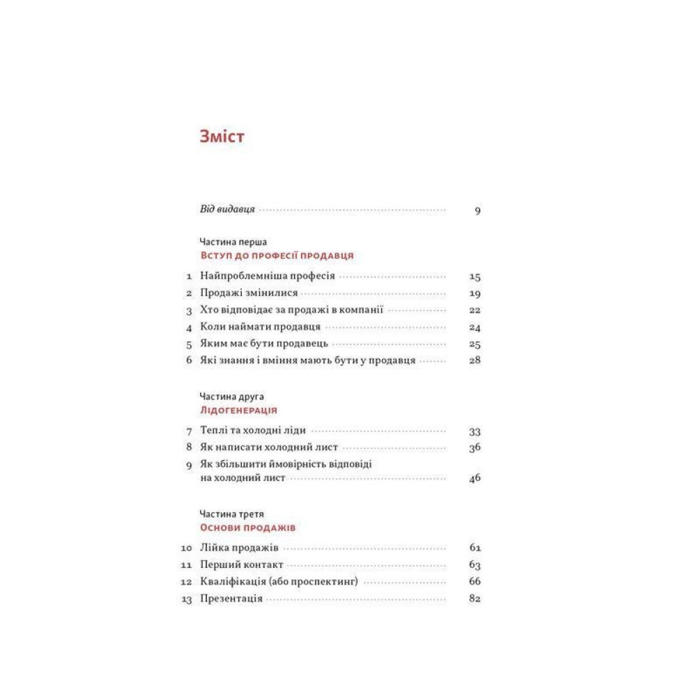 Ви дізнаєтесь, як визначати біль клієнта, презентувати пропозицію і доносити її цінність, озвучувати ціну, опрацьовувати заперечення та боротися з ігнором, а також — як розбудувати ефективний відділ продажів. Книжка буде корисною продавцям, керівникам відділів продажів, власникам бізнесів, маркетологам і фрилансерам.