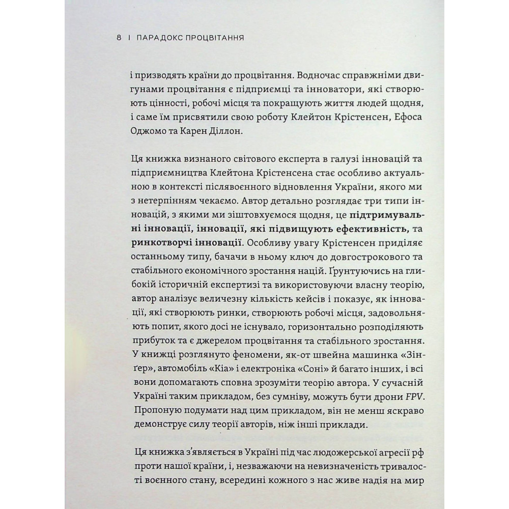 Клейтон М. Крістенсен та його колеги пропонують у книзі «Парадокс процвітання: Як інновації можуть вивести нації з бідності» новаторське рішення до справжніх і тривалих змін.