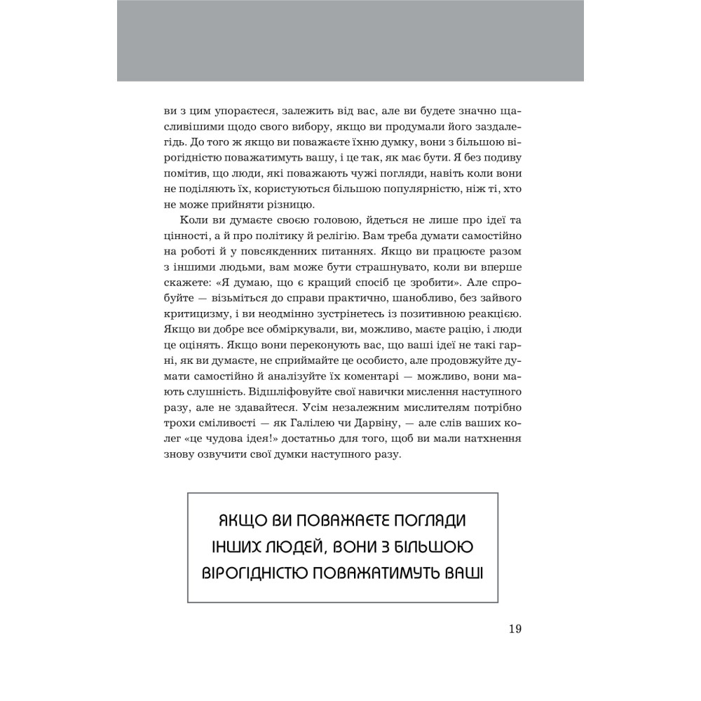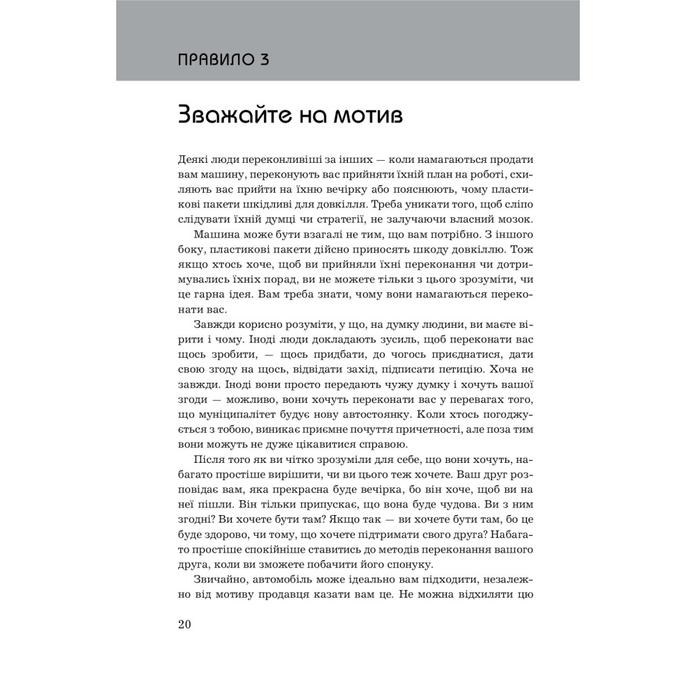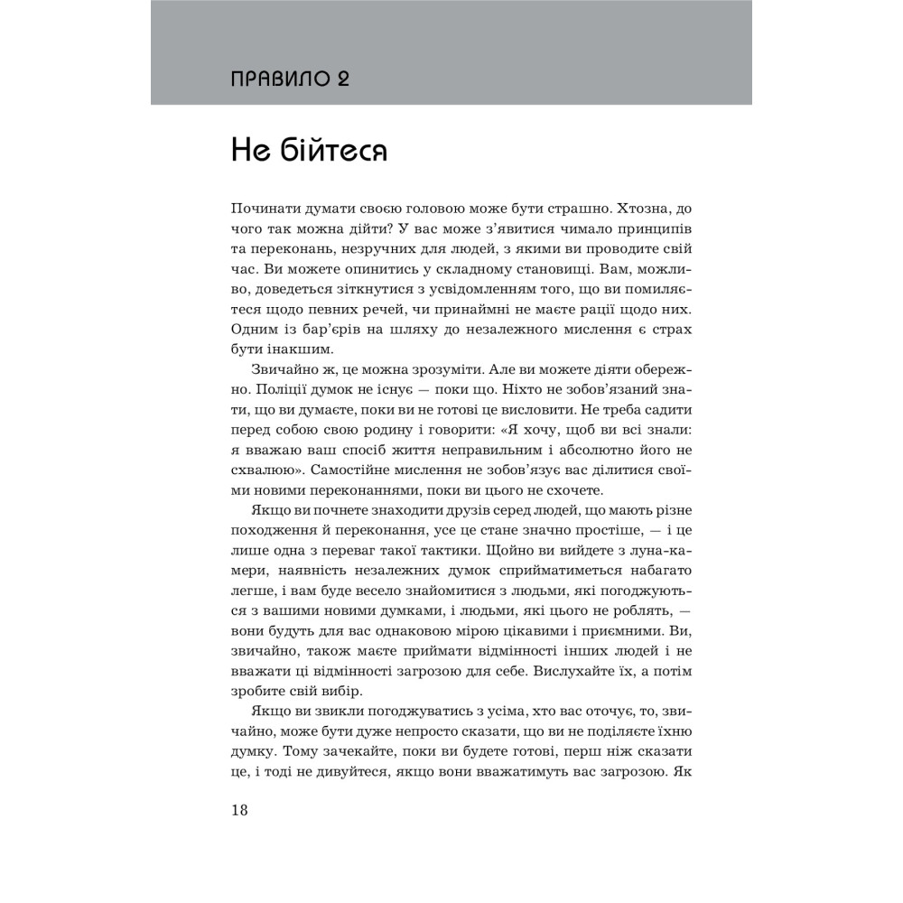 Книжка «Правила мислення. Персональна інструкція на шляху до кмітливості, мудрості й щастя» від Річарда Темплара присвячена ключовим принципам того, як приймати розумні рішення, боротися з прокрастинацією, знати, коли піти на компроміс, уникати помилок, знаходити різні варіанти, ефективно думати разом з іншими, зберігати активність розуму, мислити креативно, підтримувати позитивні думки.