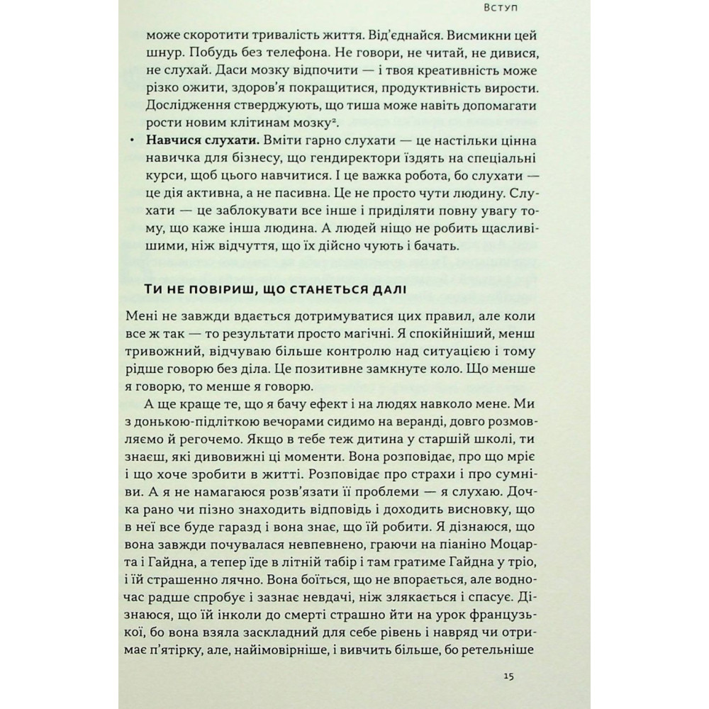Світ заохочує нас говорити більше, голосніше, частіше. Нас привчають думати, що перемагають ті, за ким останнє слово. Згадайте, скільки часу та нервів ми витрачаємо, коли «в інтернеті хтось неправий».