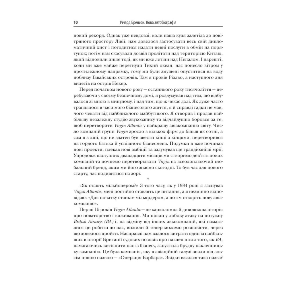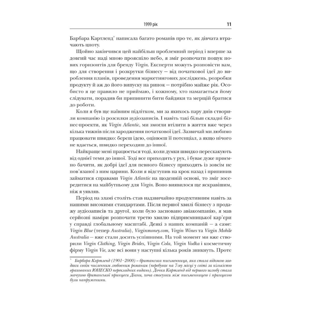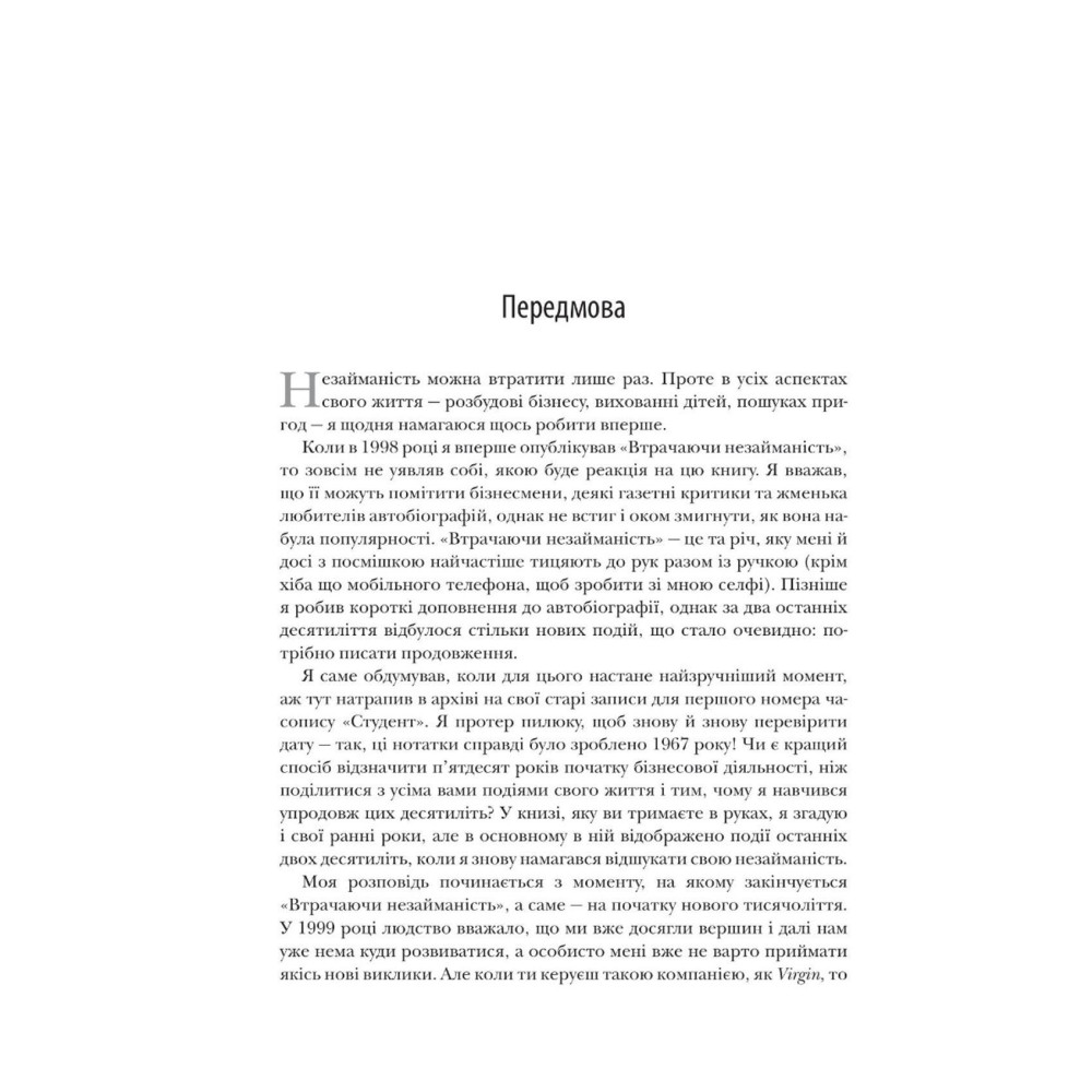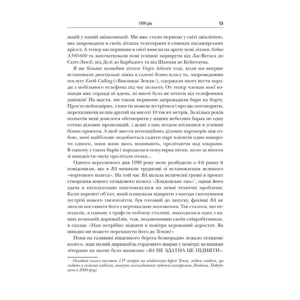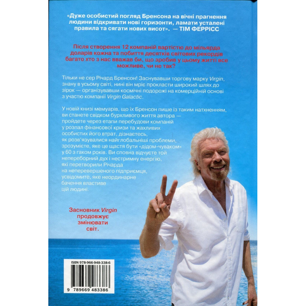 Досягши вершин бізнесу і створивши впізнаваний в усьому світі бренд Virgin, підприємець не зупинився на досягнутому й почав опановувати нові сфери — втілювати плани комерційних польотів у космос, працювати над забезпеченням населення усієї планети швидкісним інтернетом, розробляти новий вид транспорту — гіперпетлю. А ще Річард Бренсон завжди ділиться секретами своєї успішноcті. Зокрема, у цій книзі він дає низку порад стосовно того, як розпочати і розвивати власний бізнес, як долати труднощі в роботі та особистому житті, радить не боятися застосовувати неординарні рішення та вчасно визнавати помилки.
