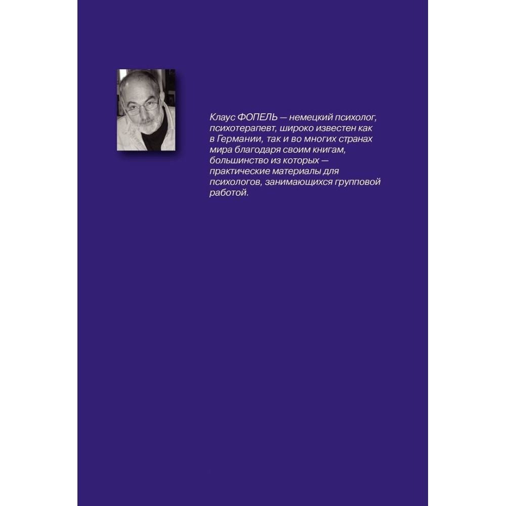 Клаус Фопель — німецький психолог і психотерапевт. Відомий у багатьох країнах своїми книжками, більшість яких — практичні матеріали для психологів, які займаються роботою з групами.